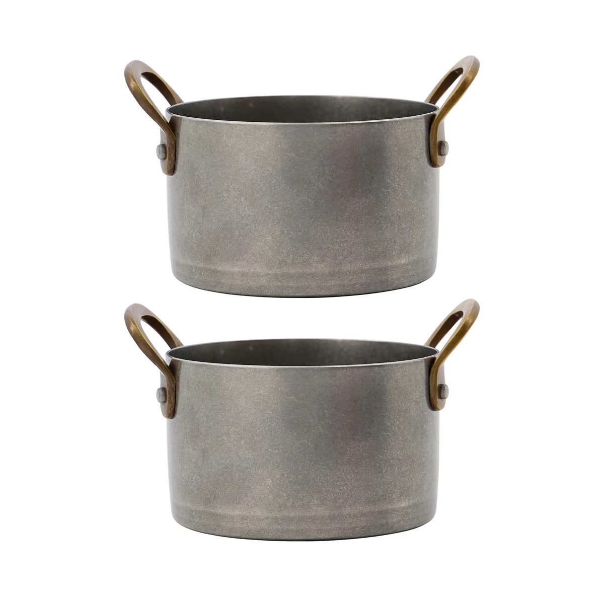 The Presentation mini pots were designed by Nicolas Vahé from stainless steel with brass elements. A casual yet stylish choice for any table setting. The pots can be used to serve delicious dishes such as stews in a rustic way directly in individual portions. For a successful dinner, the right presentation of the food is as important as the taste itself.