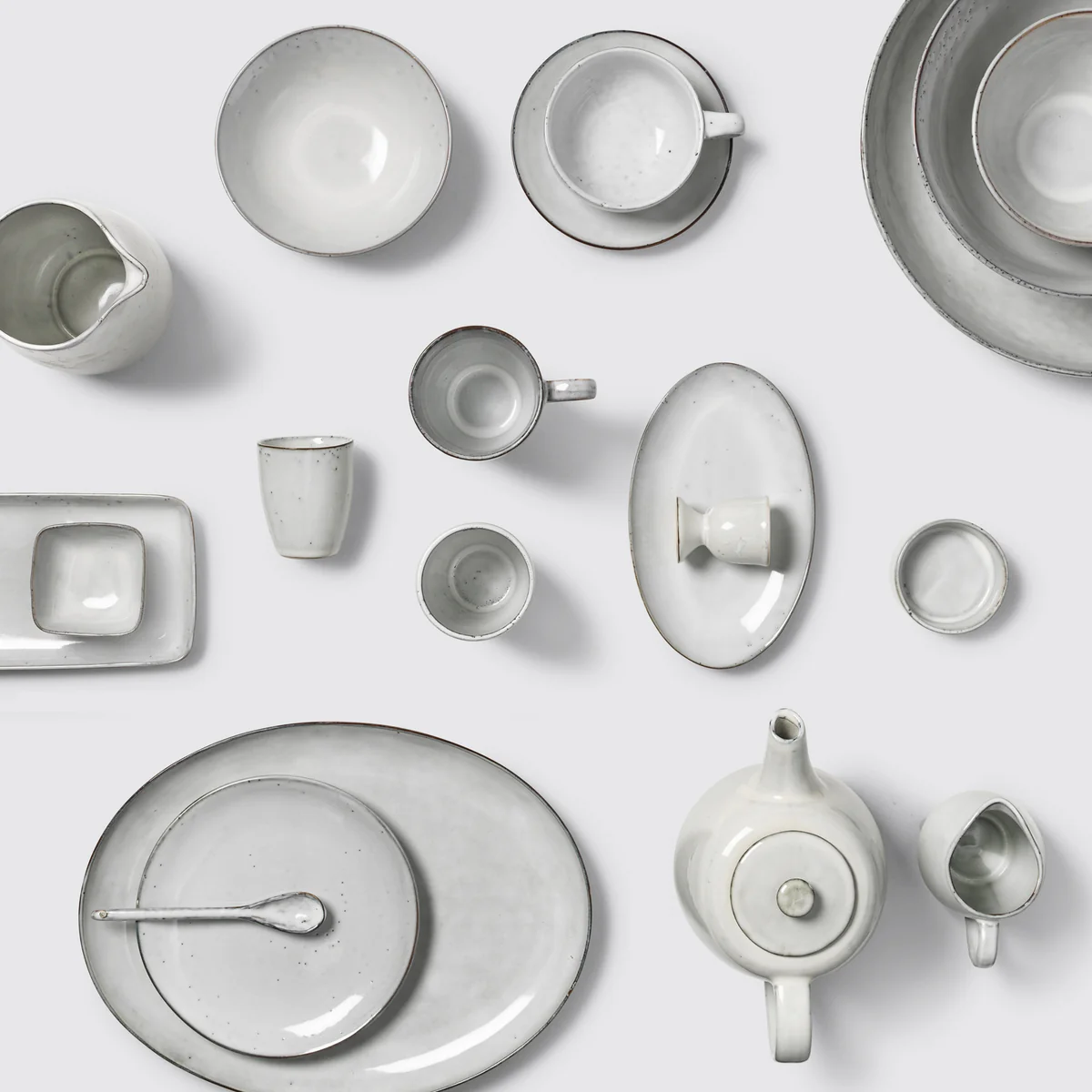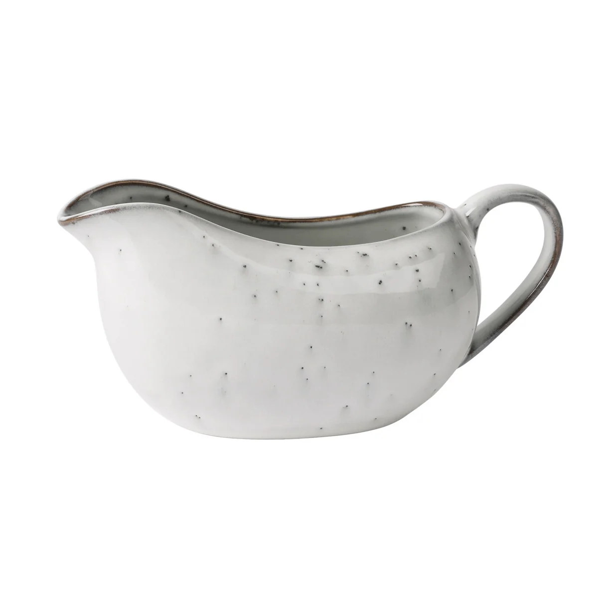 The Nordic Sand sauce boat can add a touch of elegance to the dining table. This reactive glazed stoneware bowl has a soft beige color that enhances the serene beauty of the gravy boat. Thanks to the reactive glaze, each piece has a unique pattern that makes each bowl a one-off in the tableware collection.