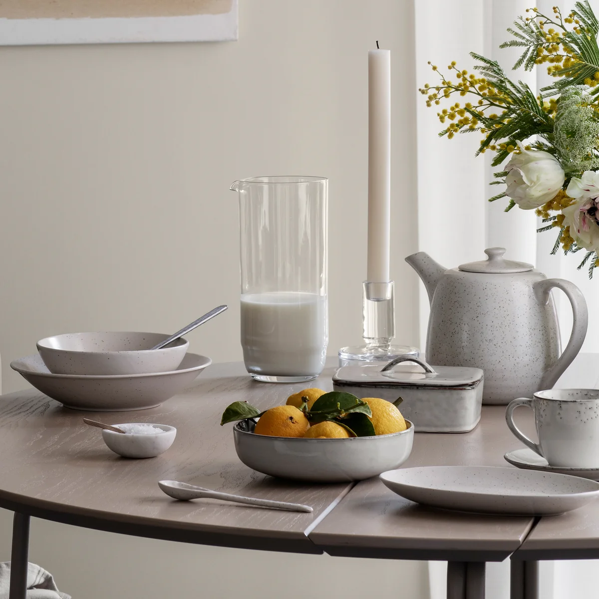 The Nordic Vanilla bowl from Broste Copenhagen is reminiscent of sweet vanilla milk with its delicate color - just like the rest of the tableware series. The bowl is characterized by a smooth yet shine-free surface and is available in different sizes. Depending on its shape and depth, it can be used for quark dishes, muesli, pasta dishes or Buddha bowls. Its organic shape creates a calm and inviting aesthetic on the dining table.