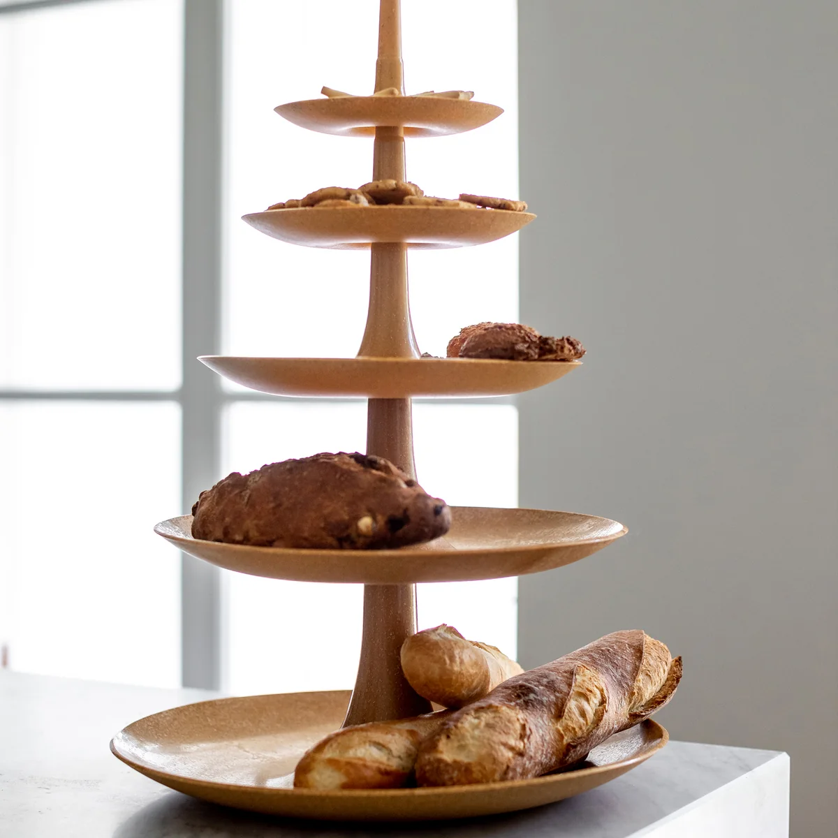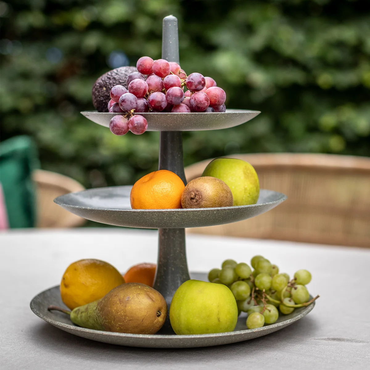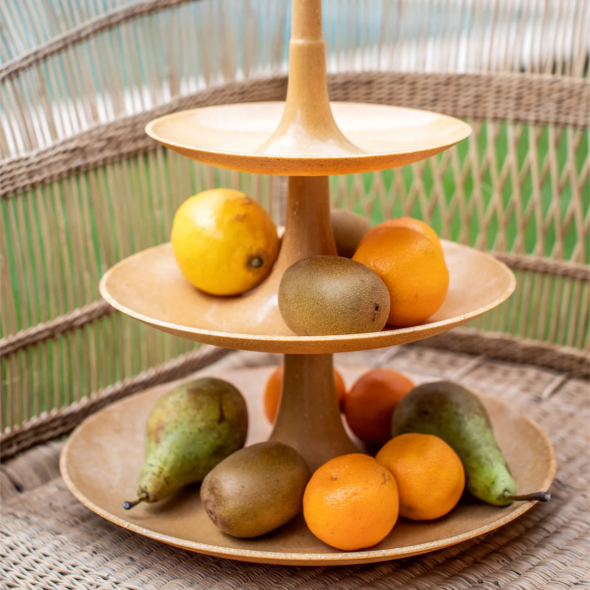 The Babell Etagere Organic from Koziol decoratively displays fruit, snacks, sweets and much more on three levels. Placed in the kitchen or on the dining table, the etagere provides an eye-catcher. For storage can be Babell disassembled into its elements and compactly put together in mirrored order.