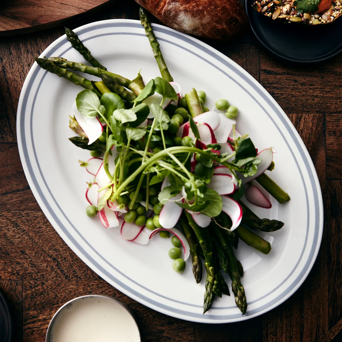 The Bistro Bowl from the Danish house Nicolas Vahé . The edge of the plate is decorated with two gray stripes that frame the food and bring it to the forefront. As the name suggests, the bowl named Bistro perfect for serving food in a casual way like in a french Bistro to serve. The bowls can be ideally combined with the rest of the Bistro -collection from Nicolas Vahé .