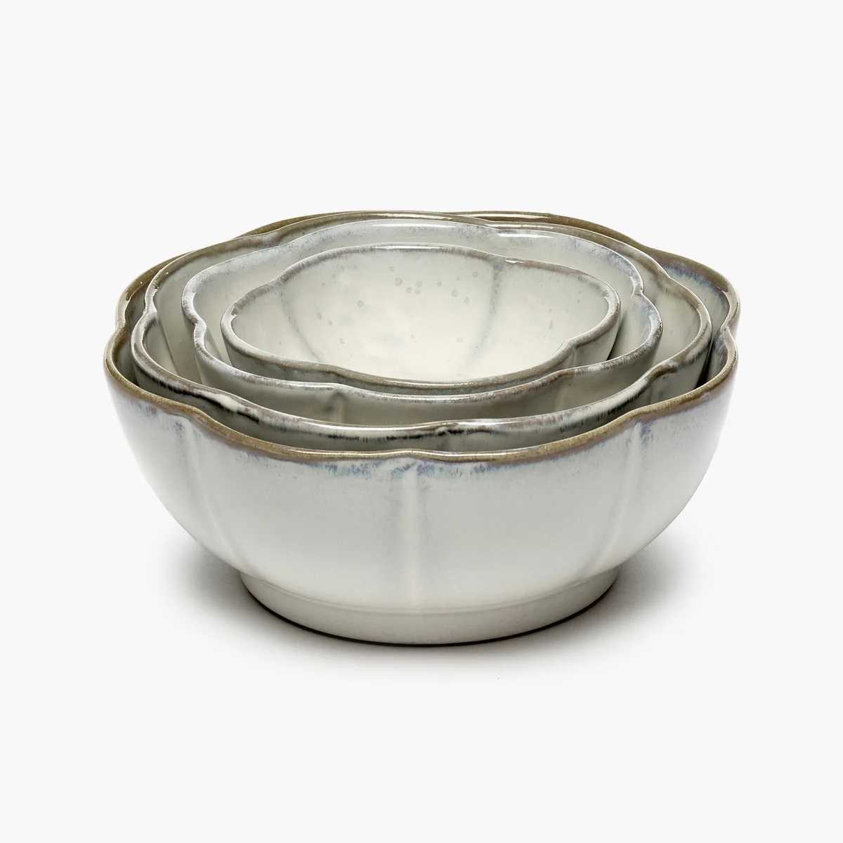 The Inku Bowl from Serax presents itself in a Nordic look, which is adorned by the flower shape of the bowls. The bowls are available in a practical set of 4 and are wonderful for serving small side dishes or snacks. Thus, the bowls can find use both at the dining table, as well as on the coffee table.