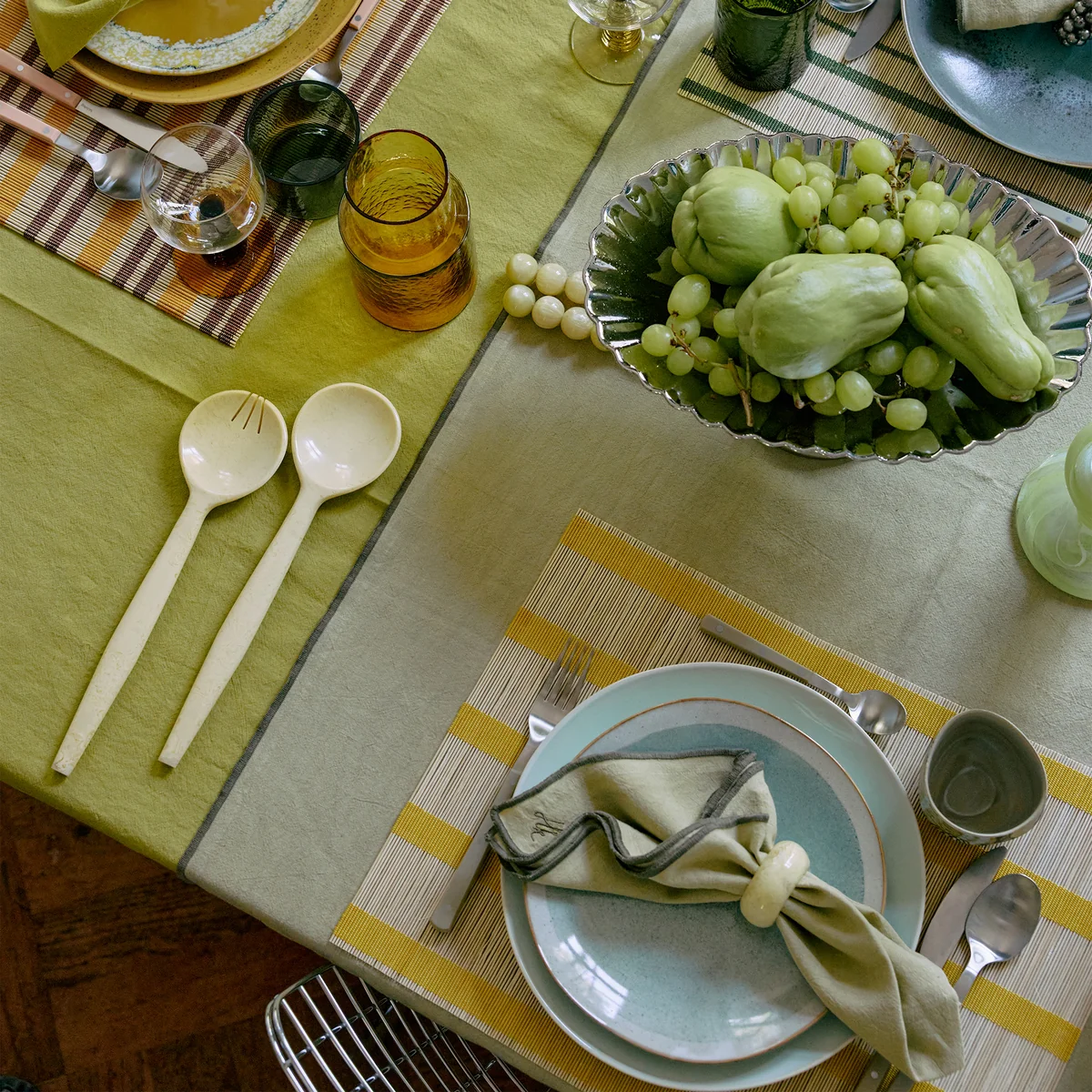 - Lightweight salad servers from HKliving with sculptural shapes and soft colors