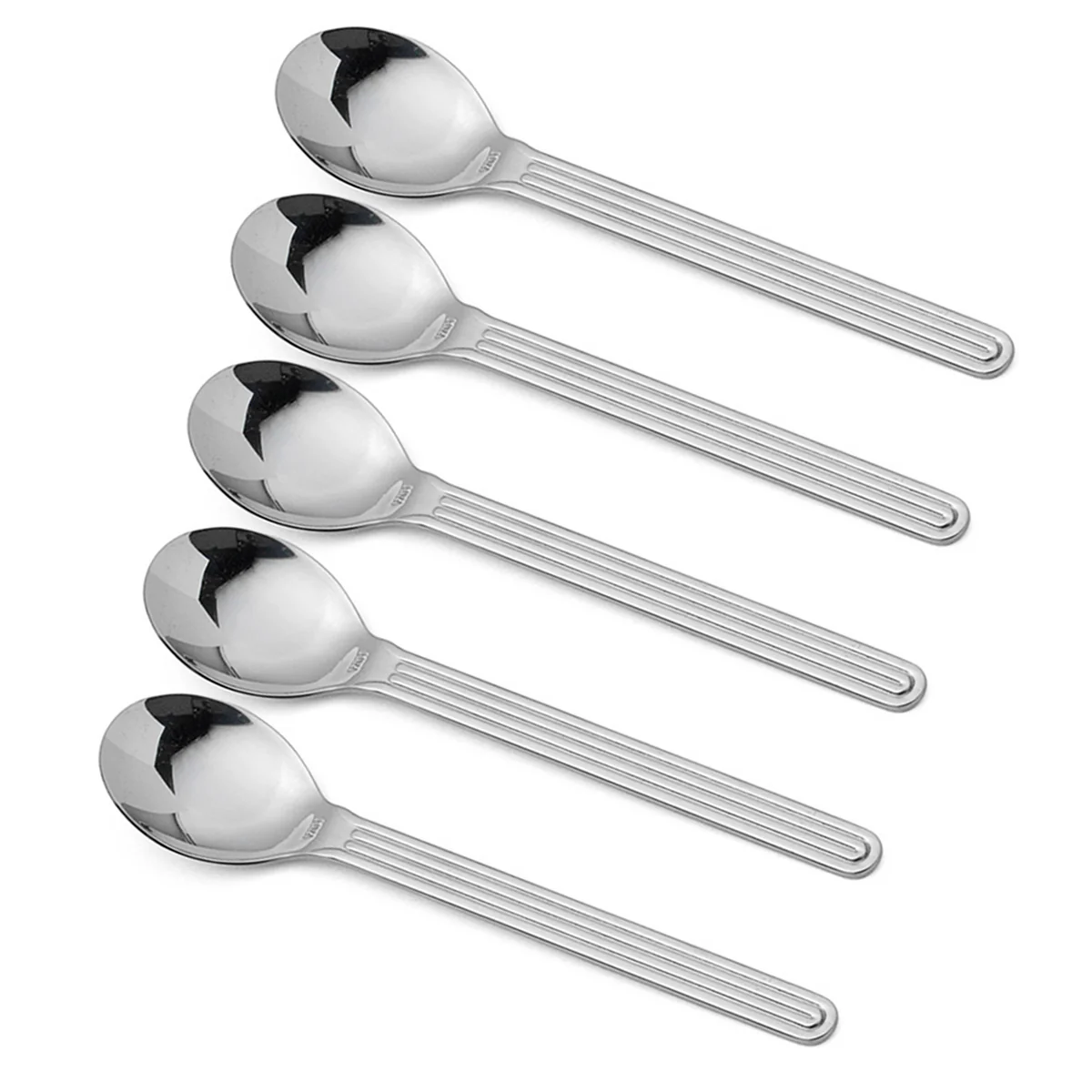 The Sunday spoon from HAY impresses with its minimalist yet functional design. Made from high-quality stainless steel and with a shiny finish, the spoon is both robust and stylish. It goes perfectly with any type of tableware and brings a simple elegance to the table, whether for breakfast, dessert or coffee. The ergonomic handle also ensures comfortable handling.
