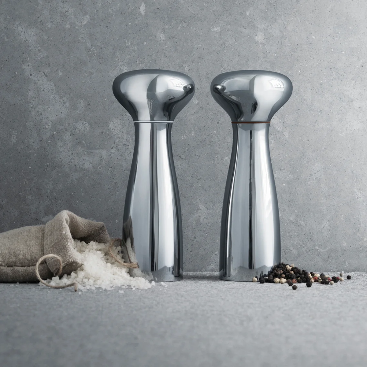 The Alfredo salt and pepper grinders from Georg Jensen are characterised by their dynamic, yet simultaneously simple look. Thanks to the attractive design, combined with functionality and suitability, they can be used flexibly. They are part of the Alfredo collection that has been designed by Alfredo Häberli for Georg Jensen.