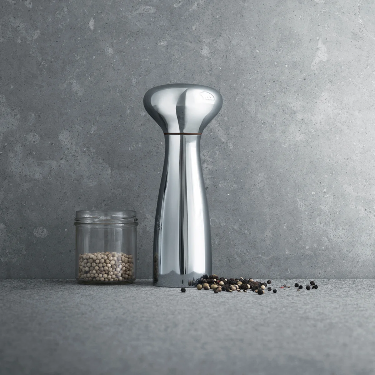 The Alfredo salt and pepper grinders by Georg Jensen are available in different sizes.