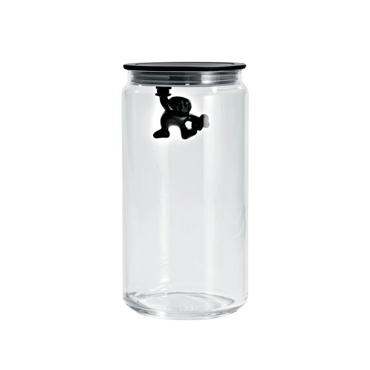 The design rests with Gianni in the product itself. The actual glass has a coloured lid, which closes the kitchen box airtight. A little man, Gianni, hangs inside the box and holds on to it tightly. The design explains the name: Gianni a little man holding on tight!