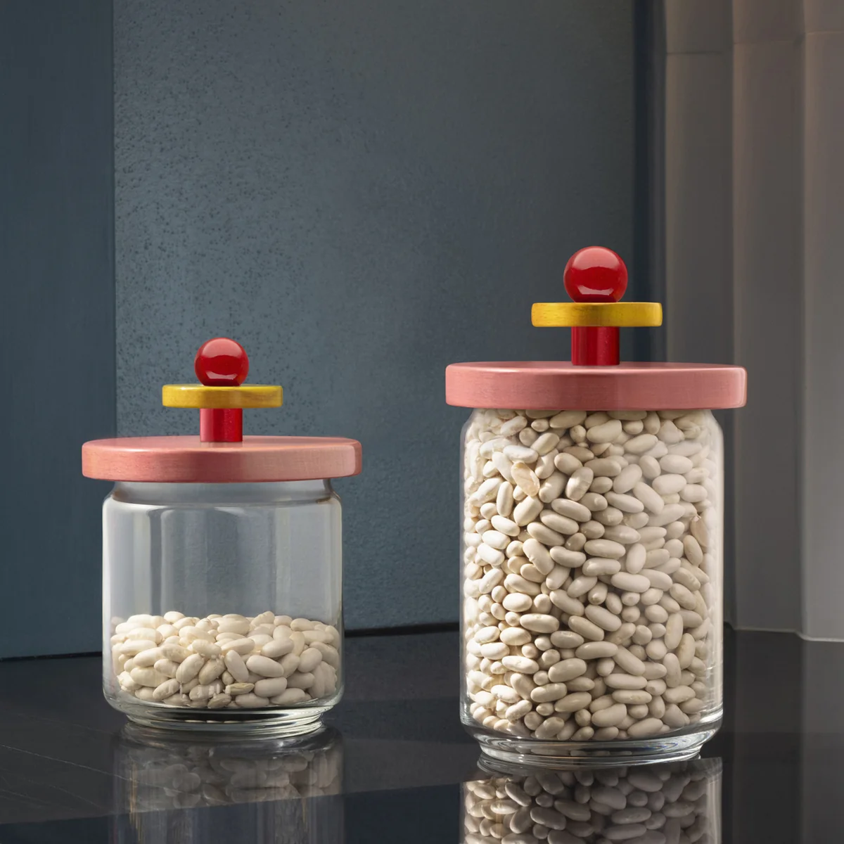 If you are looking for a special tin, you will make the right choice with the Twergi storage tin from Alessi is the right choice. Colourful and sculpturally shaped, typical for the designer Ettore Sottsass, the storage tin impresses with an extraordinary look, which becomes a highlight in every kitchen. The jar made of glass and the sealed lid made of food-safe lime wood, make Twergi an ideal and special storage tin. Muesli, pasta, rice and many other foods can be stored stylishly and safely in the storage jars from Alessi , so that they stay fresh for longer. The transparent glass also allows you to keep track of your supplies.