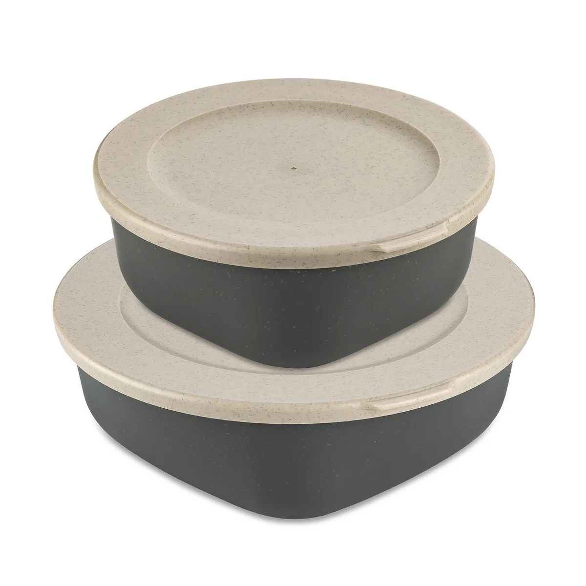 Koziol produces the Connect Storage tin made of thermoplastic plastic with cellulose. This makes the storage tin environmentally friendly, sustainable, reusable, food safe, recyclable and guaranteed without formaldehyde or BPA. All bowls are stackable inside each other, taking up a minimum of space in the cupboard.
