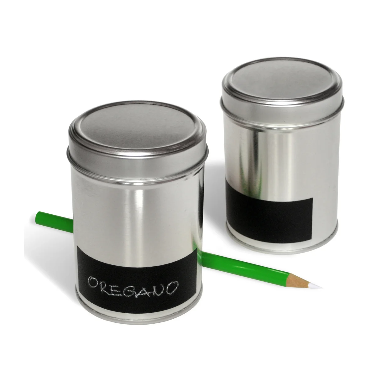 The spices boxes set of side by side consists of 6 sheet-metal boxes, one sheet of blackboard stickers and one piece of chalk. That’s how spice boxes are individually writable. And if the content changes, it is also easy to change what’s written on the box. But of course, the boxes are even more beautiful in the side by side spices shelf “Gourmet”