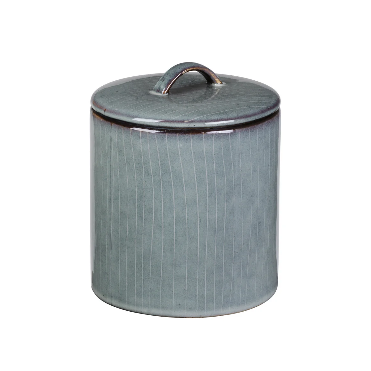 The Nordic Sea storage jar from Broste Copenhagen combines functional storage with the typical, Nordic-inspired signature of the collection. Made from reactively glazed stoneware in a soft blue shade, each jar features individual color gradients that are reminiscent of the changing surface of the sea - each piece is unique.
