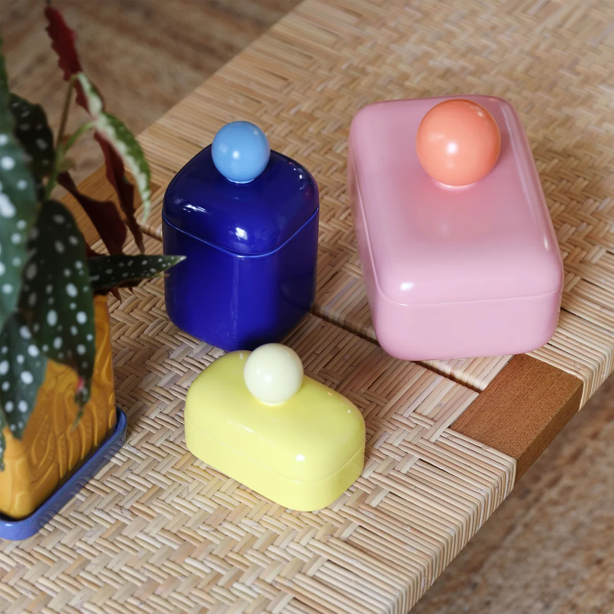 The Orb storage jar from & klevering impresses with its bright colors and unique shape, which is guaranteed to put you in a good mood. Made from robust dolomite, it provides safe and stylish storage for your items. The modern design adds a colorful accent to any room and makes the Orb box a practical and decorative highlight - ideal for the living room, office or kitchen.