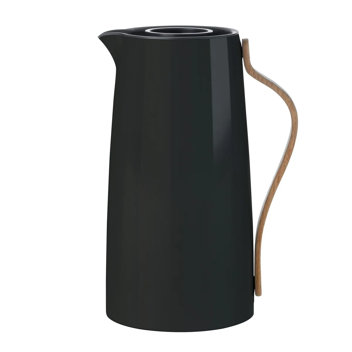 The beech wood handle gives the Emma insulated coffee pot a Scandinavian touch as well as a modern and authentic expression. The Stelton teapot has a slim silhouette and is easy to distinguish from the bulbous teapot of the series. Steltons Emma coffee vacuum jug in its modern design with steel insert and practical click lid, which is easy to operate with one hand, invites you to brew traditional filter coffee.