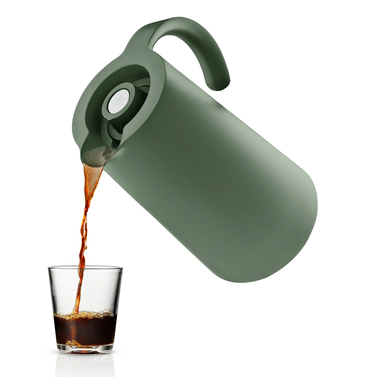 The Rise vacuum jug from Eva Solo combines functionality with a simple, elegant design. Thanks to a vacuum in the double-walled jug, coffee or tea stays hot for many hours. In addition, the Rise vacuum jug is easy to open and close with just one press of the lid. To fill or clean the jug, the lid can simply be twisted off. This jug can be perfectly combined with the Rise kettle to give the kitchen a typically Scandinavian, simple design.