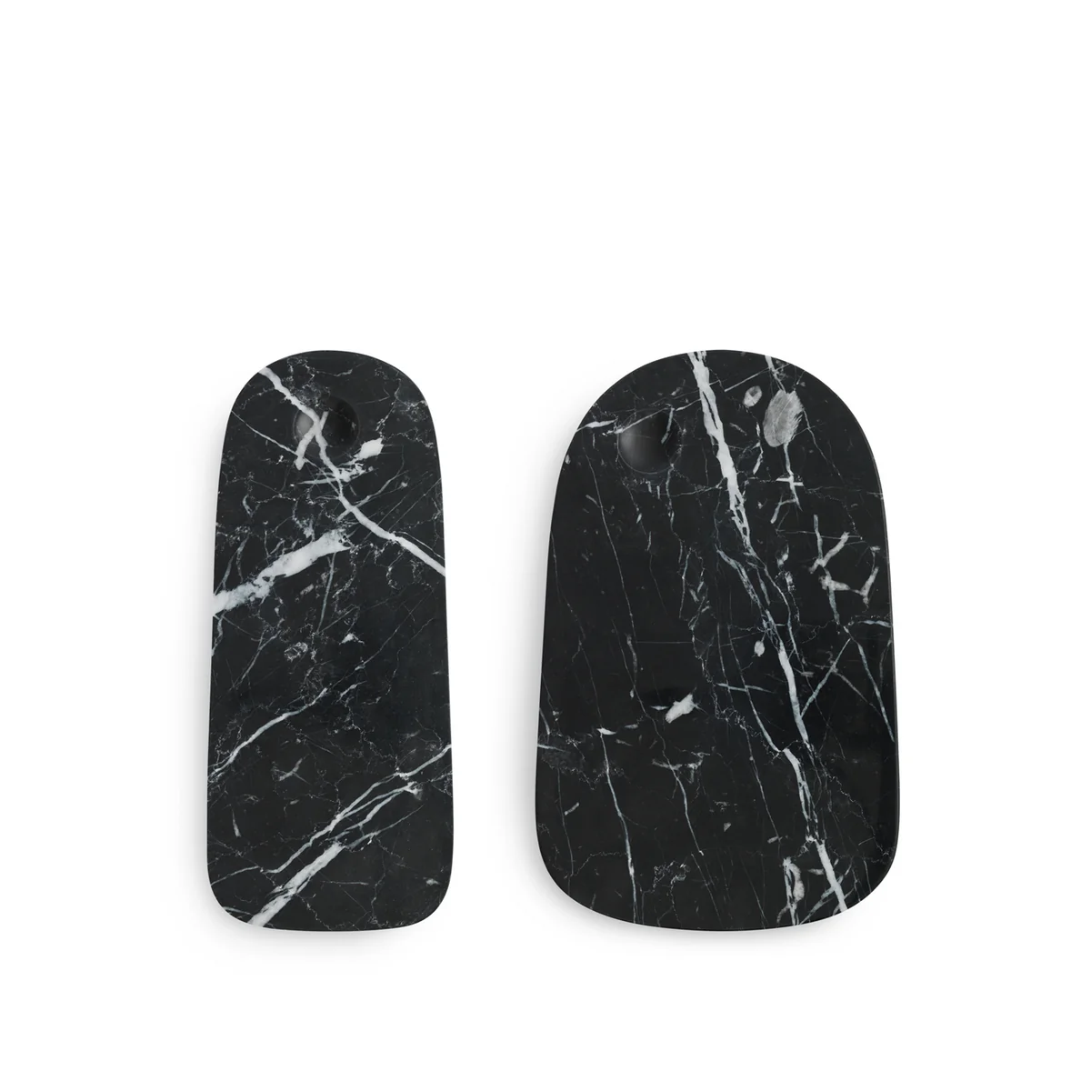 The elegant serving board made of solid marble by Normann Copenhagen is part of the Pebble collection designed by Simon Legald. It is available in two different sizes and is thus suited to serve, cheese, snacks and other treats or to decorate candles and other accessories.