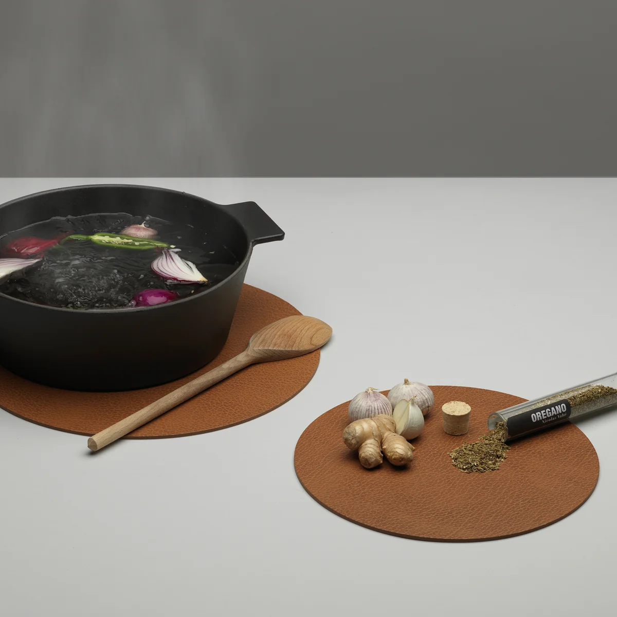 The round leather trivets come in different sizes and leather designs. It harmonises perfectly with the other mats from the Lind DNA collection.