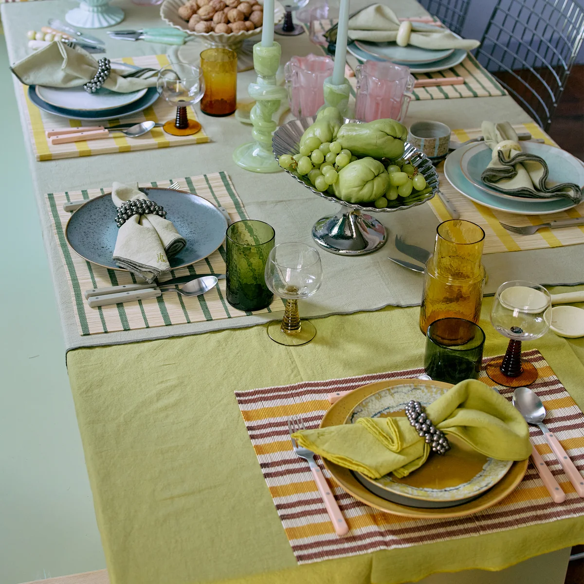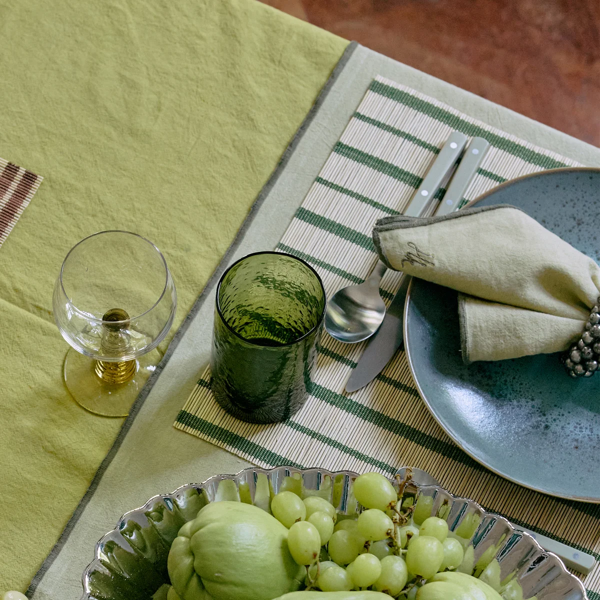 The tall Tube drinking glass from HKliving picks up on the collection's striking design language: colored glass with a subtly irregular surface that effectively reflects the light. With its generous, cylindrical shape, it looks both modern and elegant - ideal for long drinks or sparkling water.