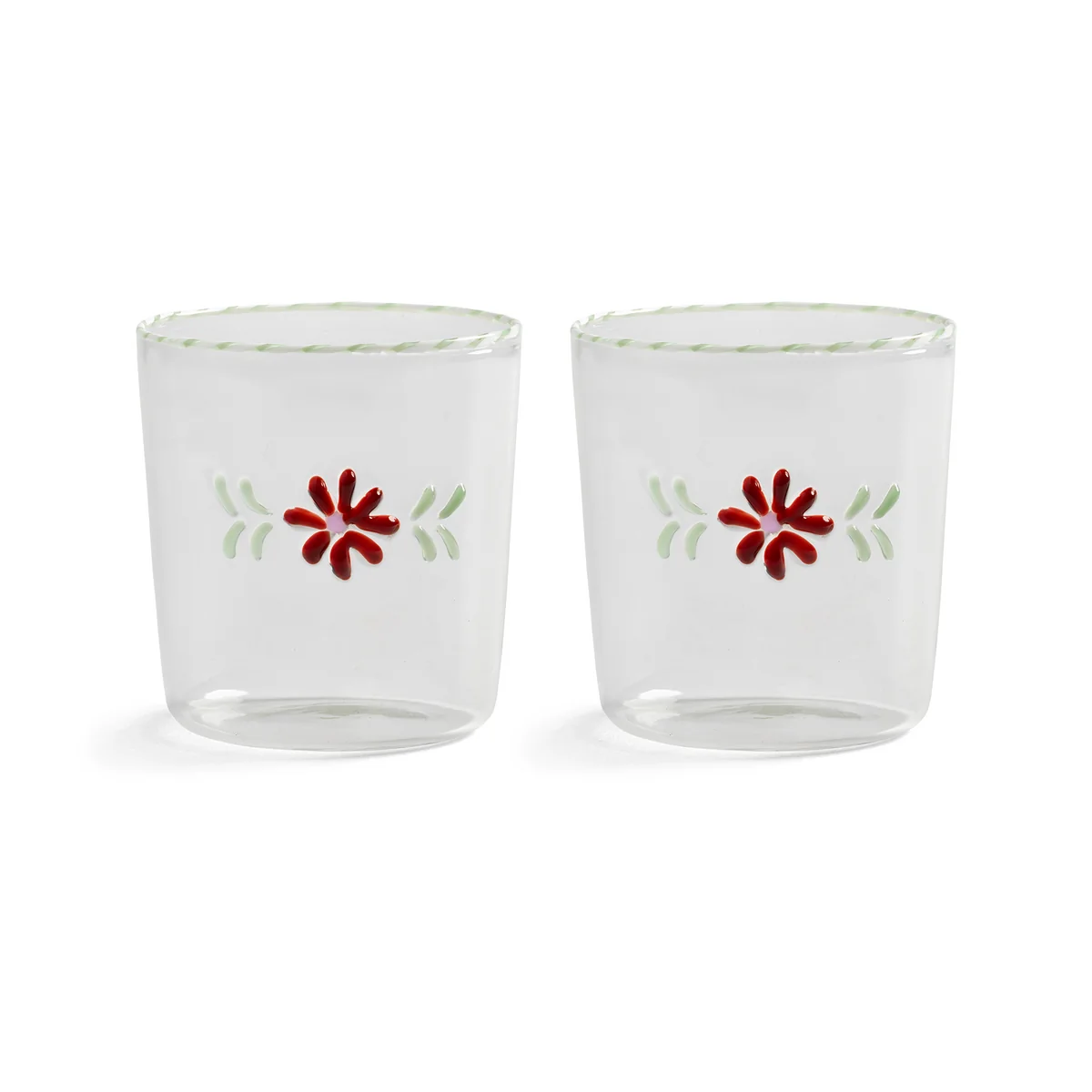 The Flora drinking glasses from & klevering combine robust borosilicate glass with Scandinavian-inspired folk patterns. Hand-decorated with lovingly placed flowers and leaves, each glass impresses with a unique twist - two colors merge at the rim to create a harmonious overall picture. The set of two glasses combines functionality with a striking design and comes in the typical & k box, making it an elegant eye-catcher on any table.