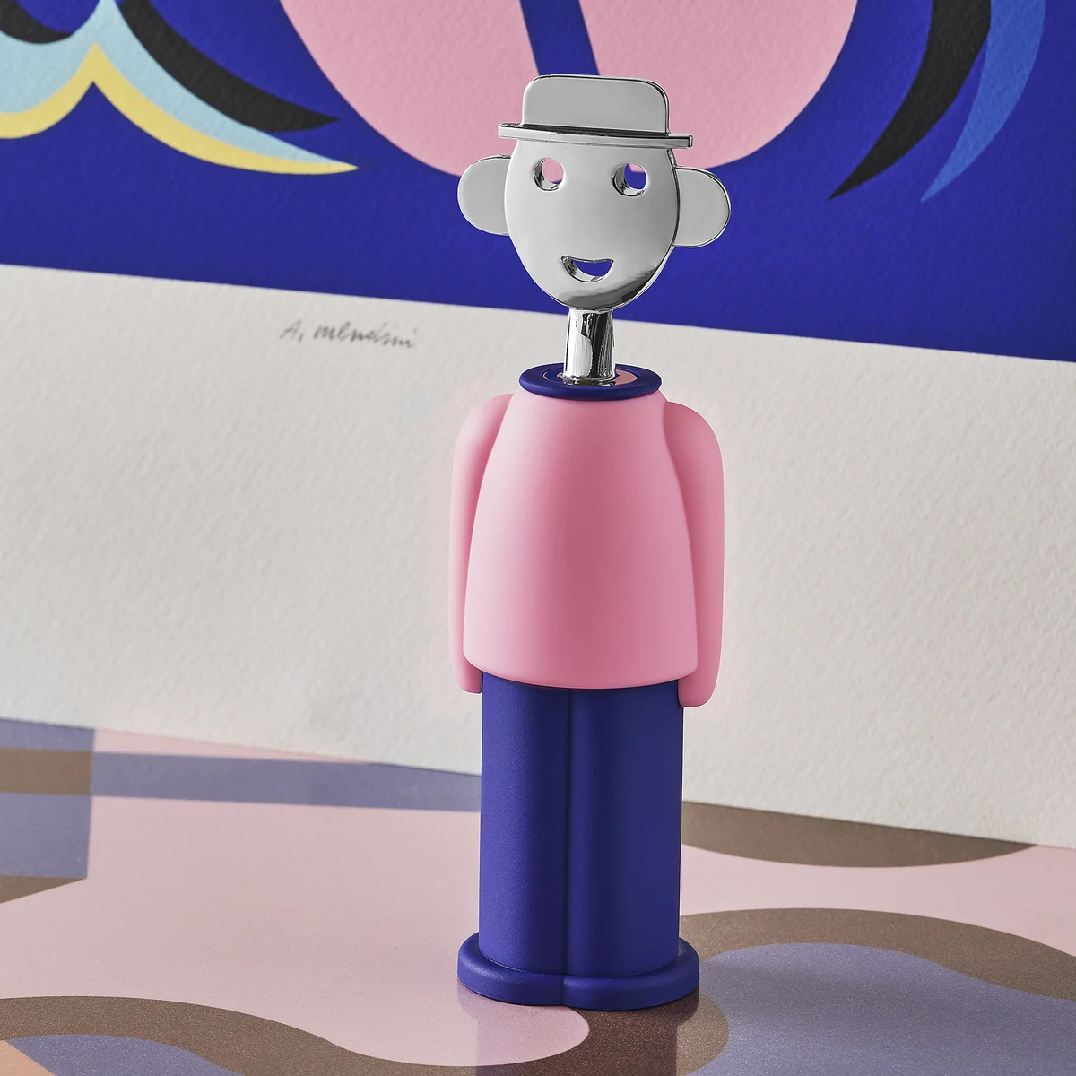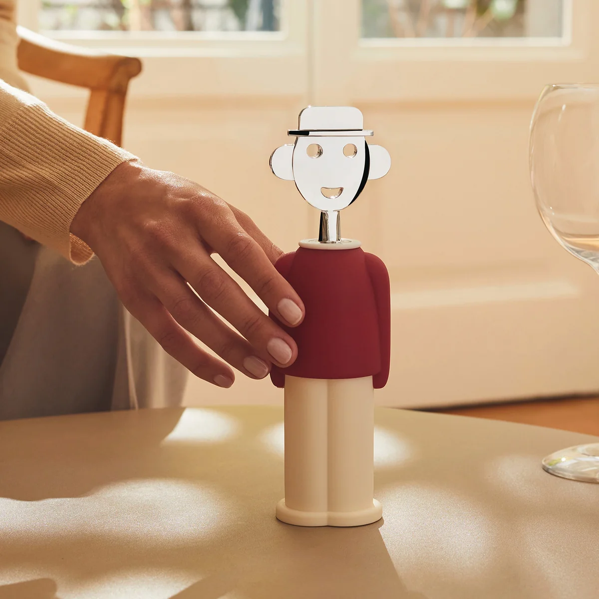Perhaps it was out of jealousy of the great success of "Anna G." that Alessandro M endini decided to delight us with the figure " Alessandro M .". As is undoubtedly easy to recognize, this corkscrew is the designer's self-portrait. Although it may look easy, in reality it was anything but easy to create a new character that could fit into both the designer's autobiographical events and the international design scene.