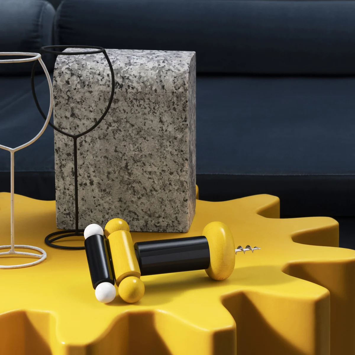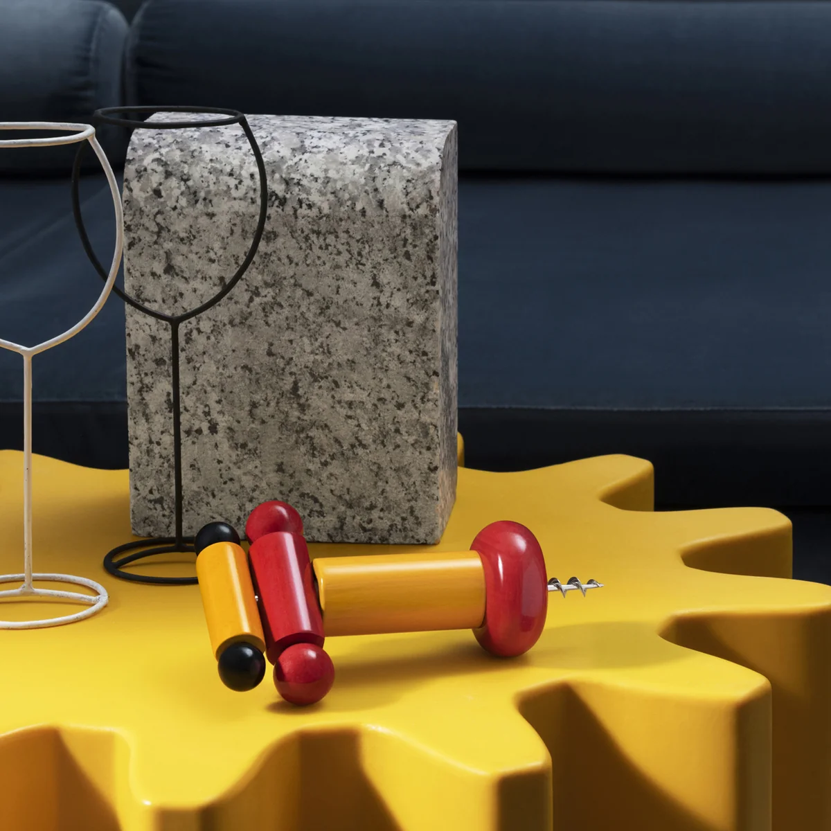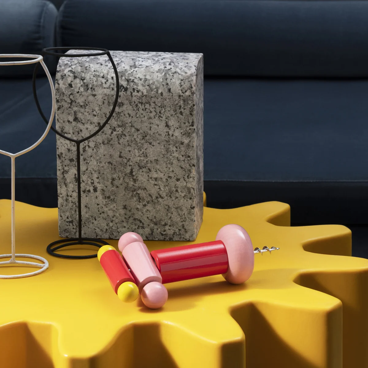 Characteristic for the extraordinary designs of Ettore Sottsass, this corkscrew is Twergi corkscrew in cheerful colours and various elements combined with each other. The organic shapes combine to create an ergonomic design that fits comfortably in the hand. Due to its colourful appearance, the wooden corkscrew becomes a playful accessory on the table even after use.