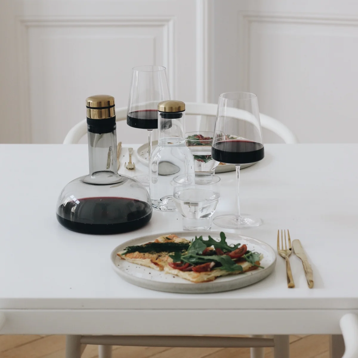 The Wine Breather from Audo decants wine in the blink of an eye. This creates space for spontaneity - and the unique wine decanter also makes it possible to serve decanted, ready-to-drink wine in the original bottle.