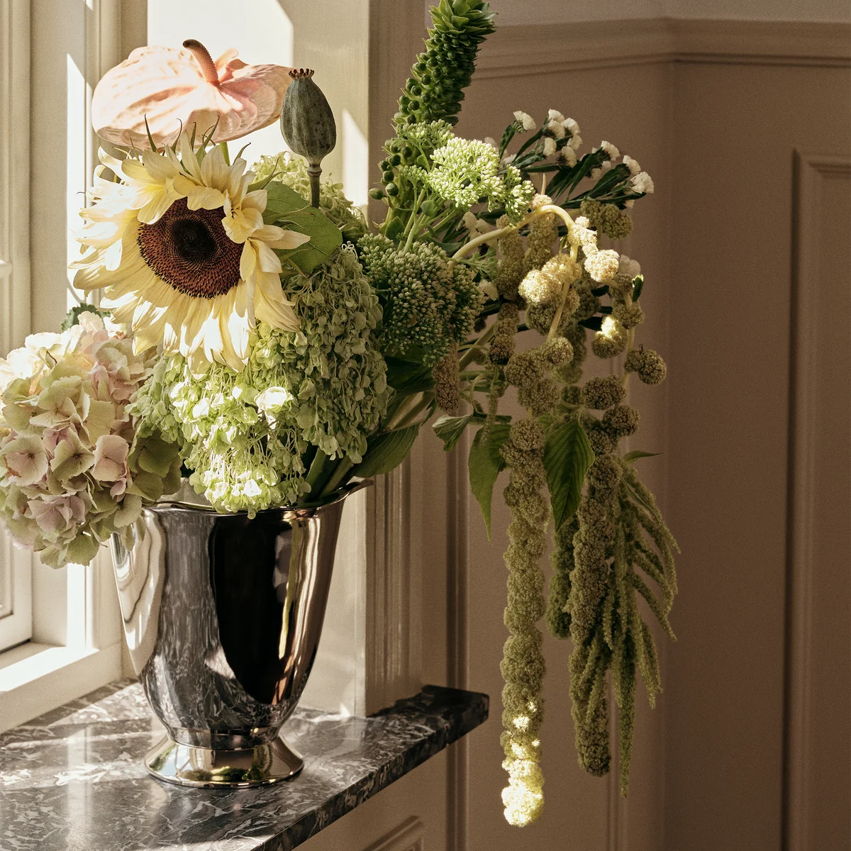 The Beatrice wine cooler from Broste Copenhagen is an elegant and functional accessory for discerning wine lovers. Made from high-quality aluminum, the wine cooler impresses with its timeless aesthetics and excellent ability to keep your wine at the perfect temperature. The simple yet sophisticated design blends harmoniously into any table arrangement and adds a stylish accent to any occasion.