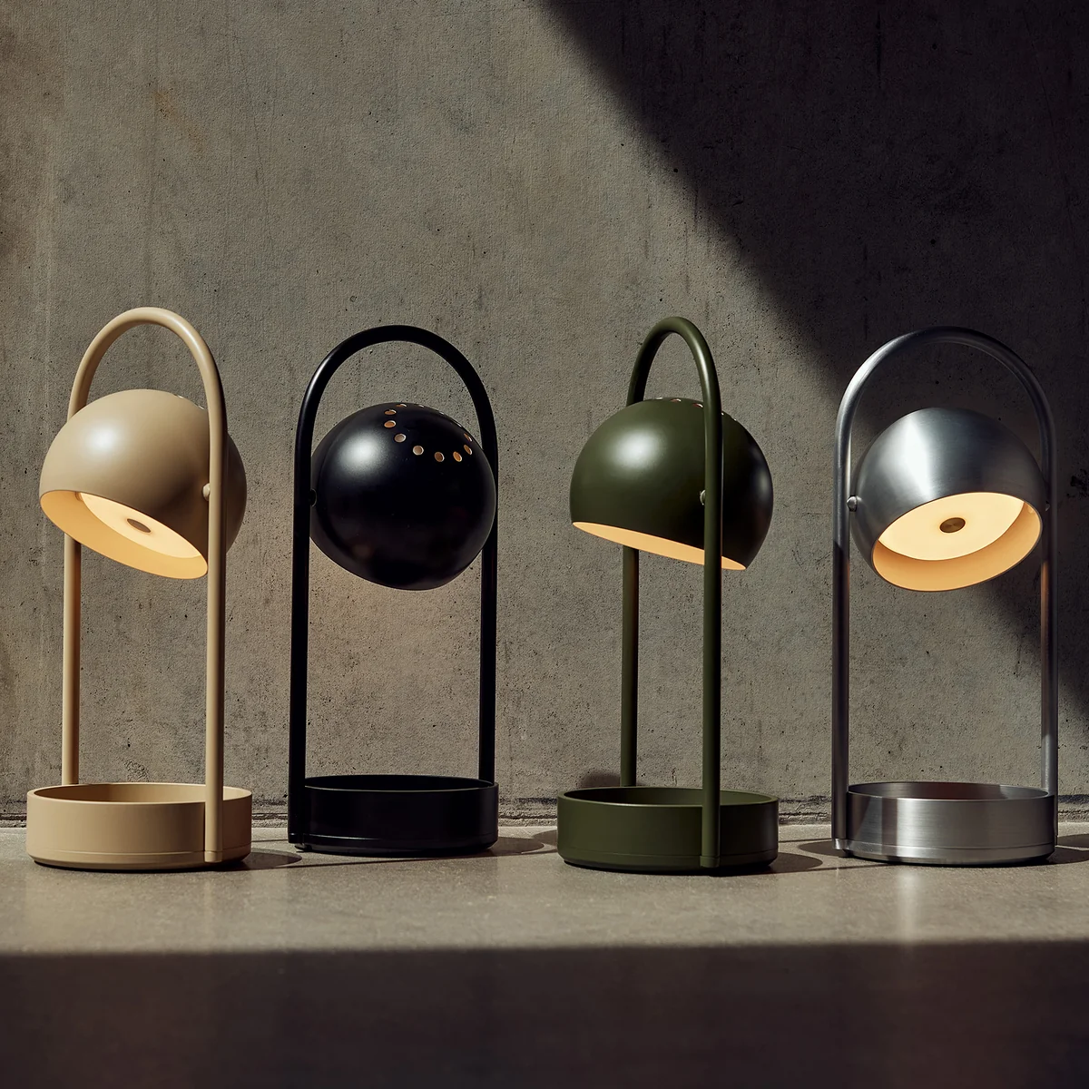 The Ball Portable Table Lamp by Benny Frandsen and the FRANDSEN Design Studio is a modern reinterpretation of the iconic Ball -design. It combines timeless form with practical functionality and offers flexible light direction thanks to the adjustable tilt joint. The integrated ONE light source with three-stage dimming function provides up to 12 hours of light at maximum brightness - perfect for cozy evenings, reading or atmospheric lighting on the go. Its soft, warm light creates an inviting atmosphere wherever you use it.
