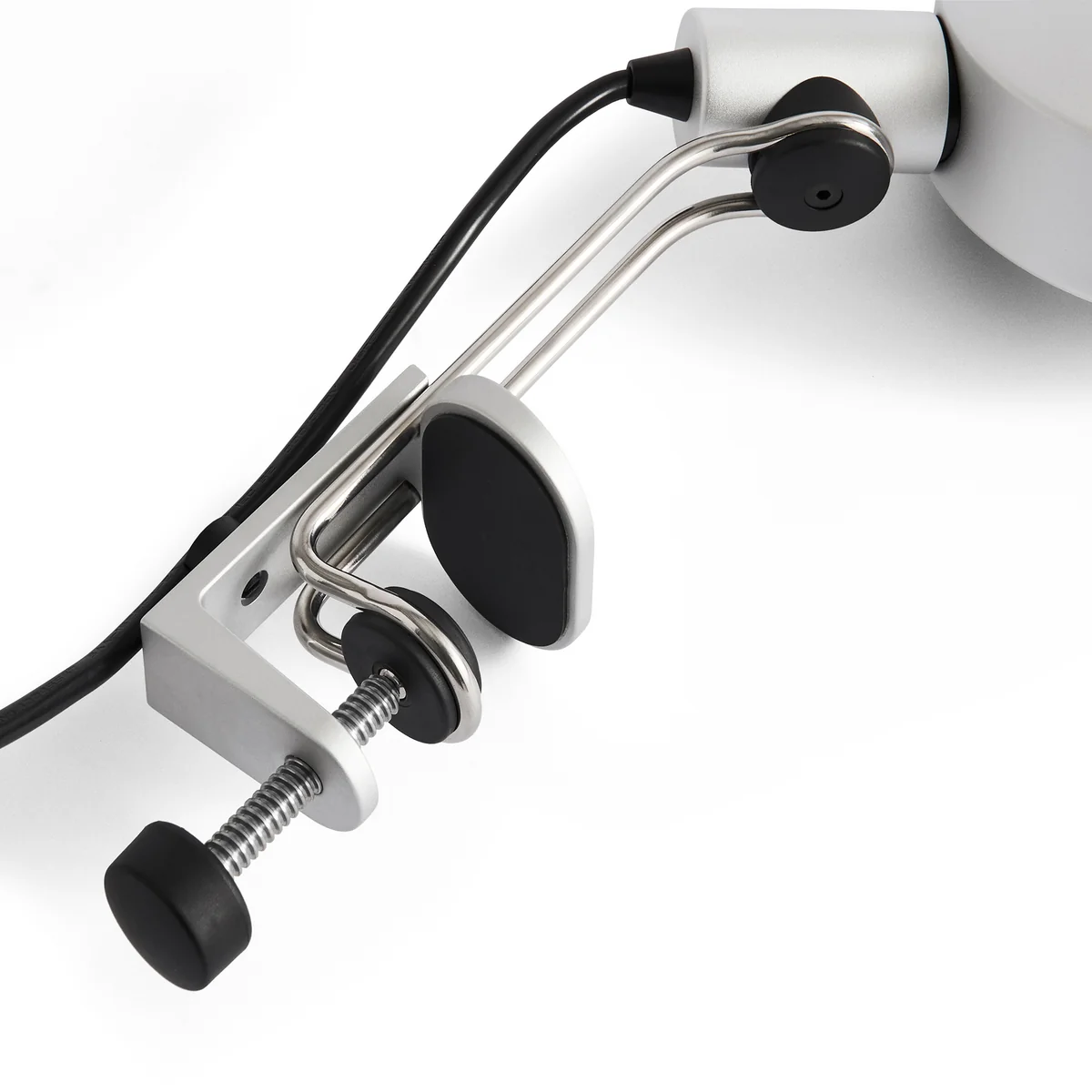 The Cupola clamp lamp from HAY is an adjustable lamp that provides maximum movement with minimal mechanisms. With a 360° rotating head, swivel bracket and clamp, it offers a sleek and linear design while providing a functional and technically advanced lighting solution.