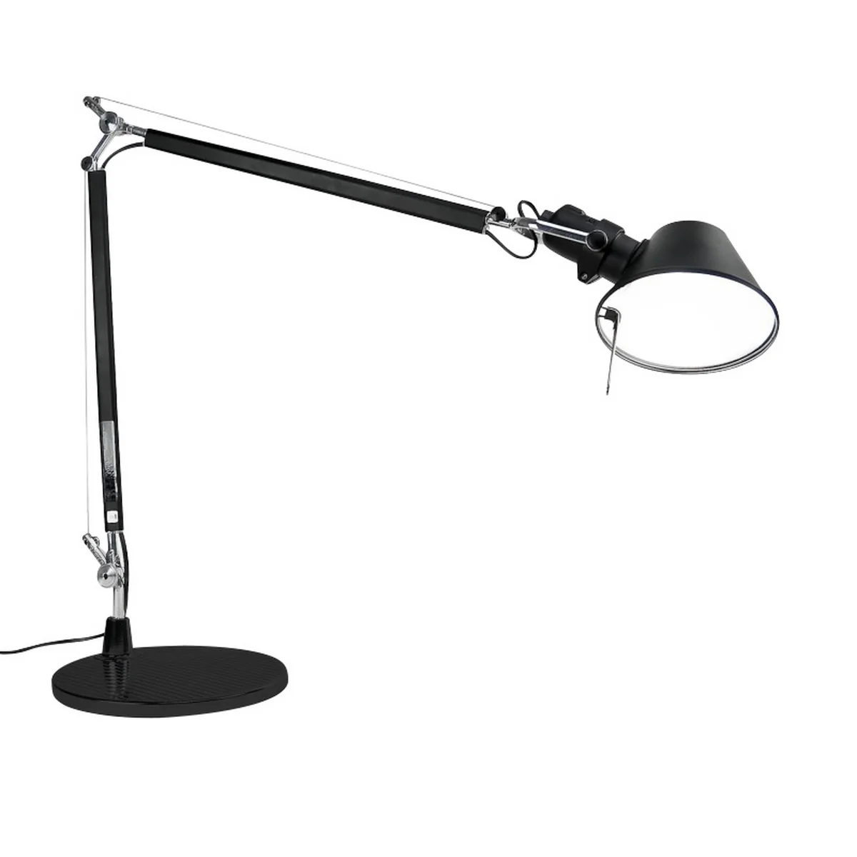 The highly flexible frame, the simple aluminum look and the hat-shaped shade are the hallmarks of the Tolomeo, whose simple and archetypal shape has inspired many manufacturers and designers to create similar lamps. The length of the cable is a generous 2 meters, providing the necessary flexibility.