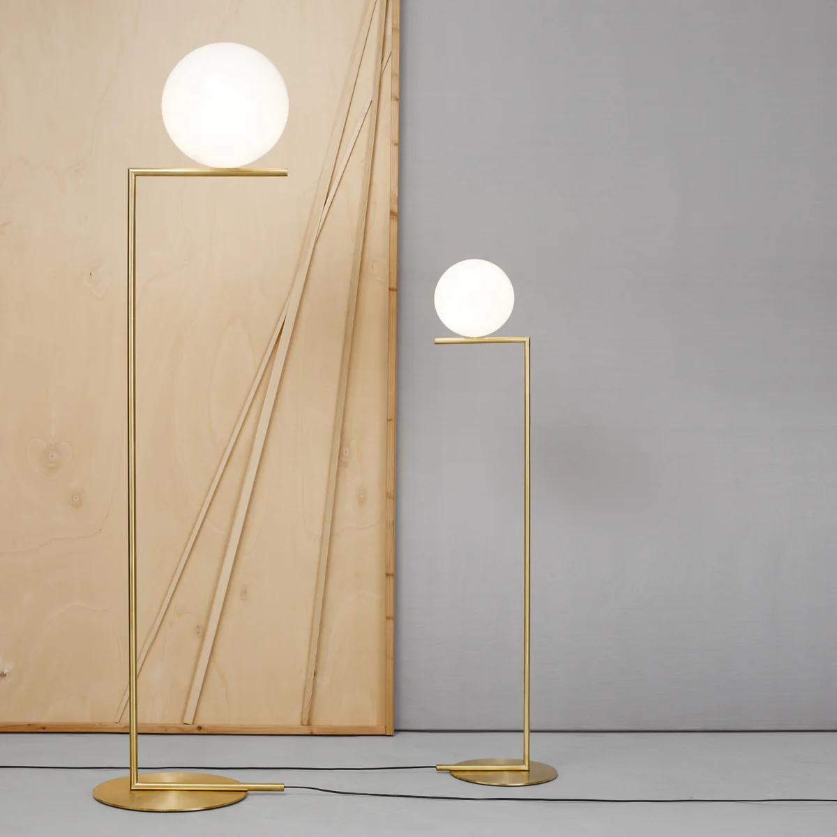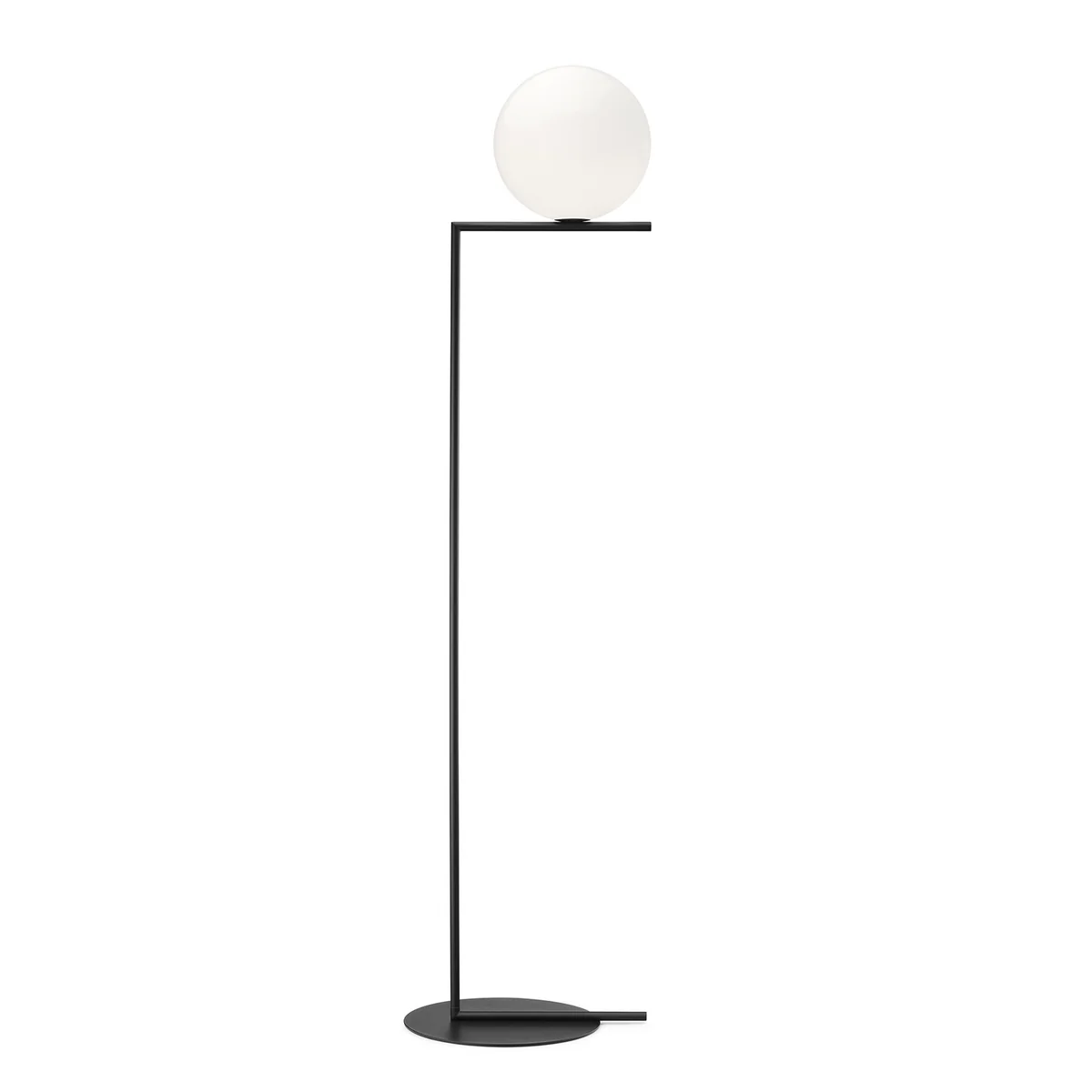 The contrast of filigree lines and voluminous light bodies, made of metal and opalized glass, creates a unique charm in the Flos IC floor lamp. The material is reminiscent of times gone by, while formally being placed in a new context. ic Its matt opal glass luminaire head emits a soft and dimmable light ic h that is ic h glare-free in the room and is particularly suitable for living rooms and bedrooms thanks to its cozy ic hue.