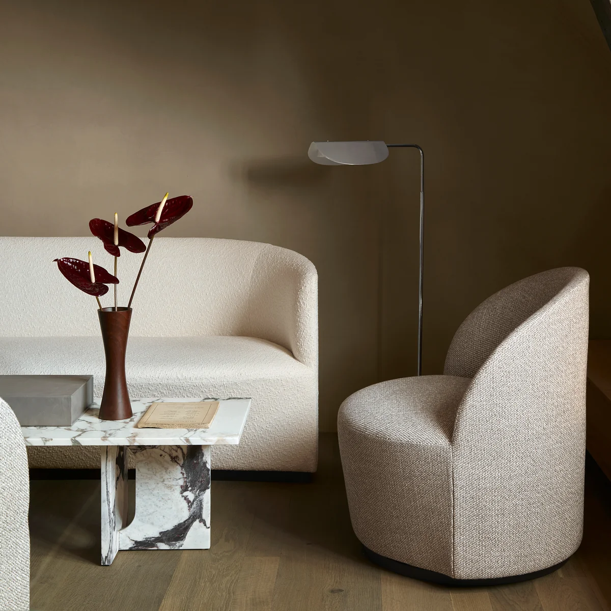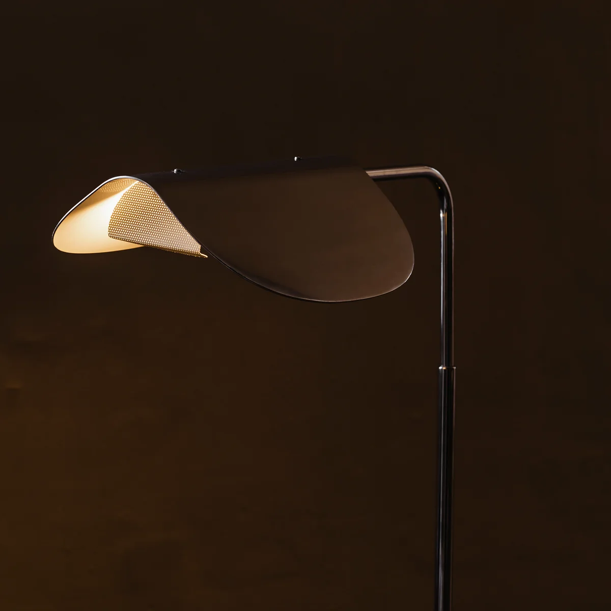 Sitting on a slender frame, the polished aluminum shade rotates to direct light where it's needed, creating playful shadows and captivating movement. Wing is available as a floor and table lamp and, thanks to its minimalist aesthetic, blends seamlessly into any interior style, illuminating spaces with its natural presence.