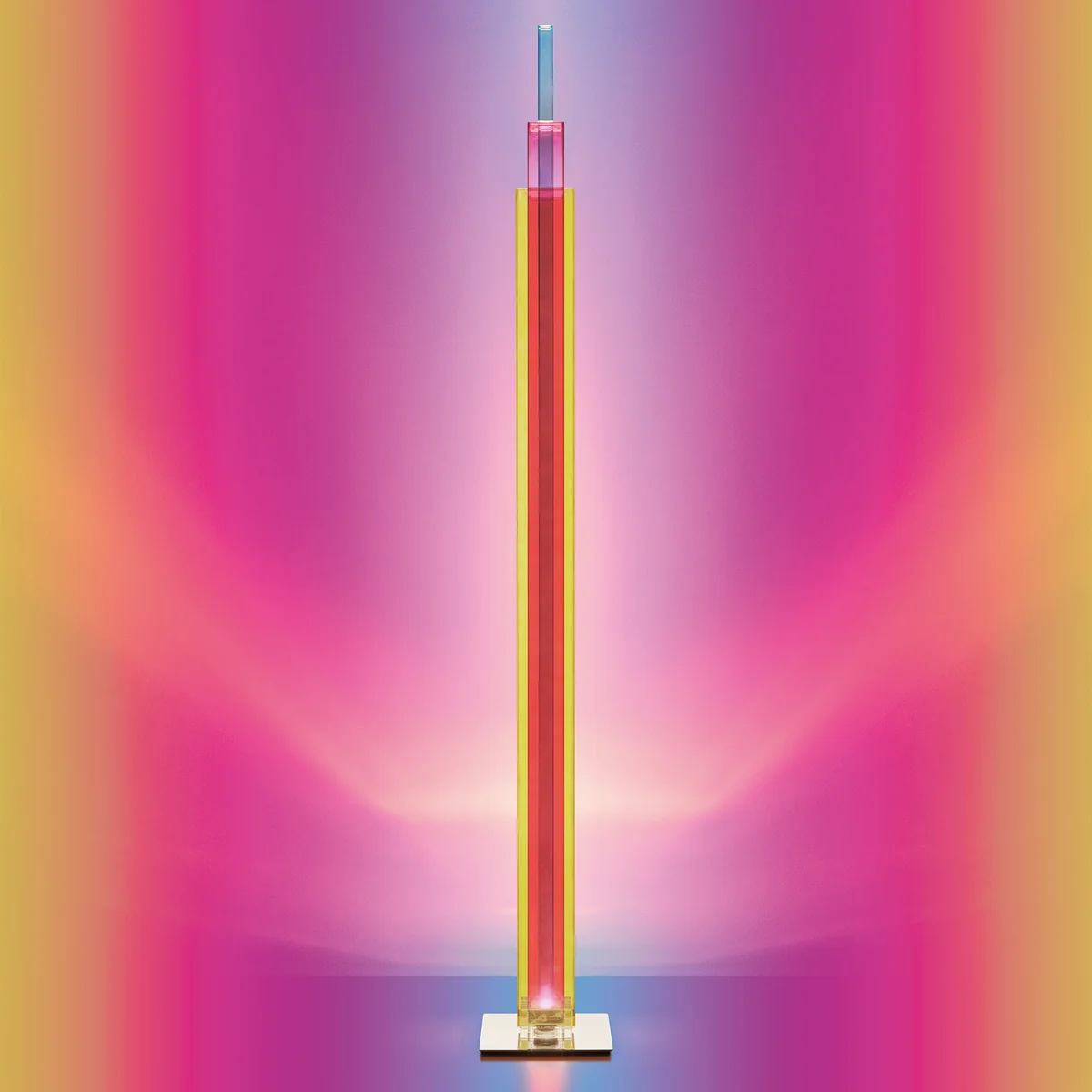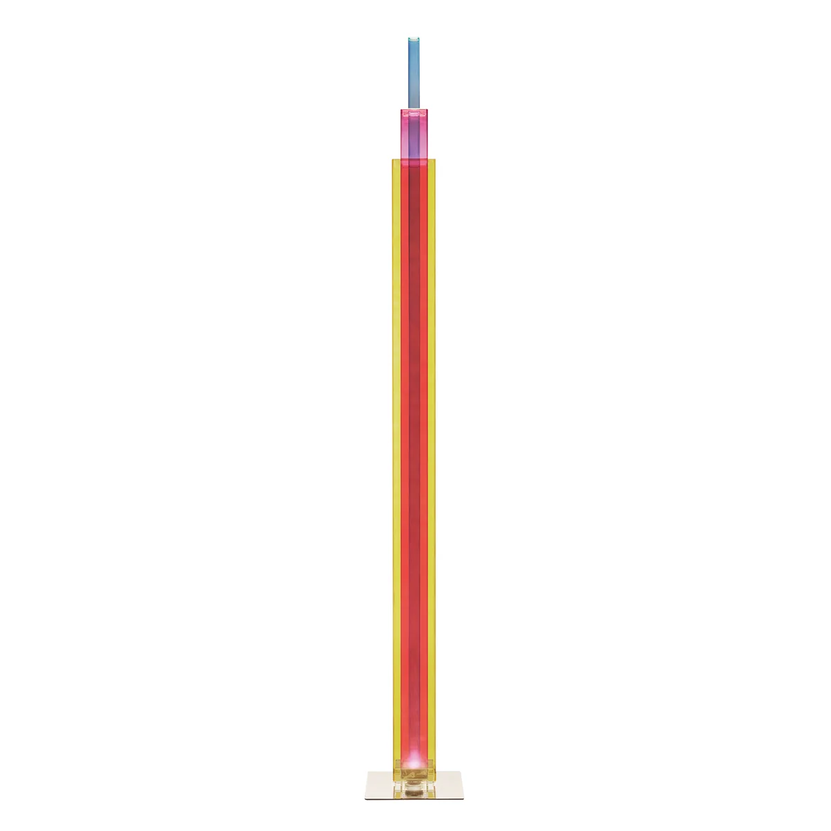 The UpTown Floor lamp of the Italian manufacturer Foscarini inspires with its unusual design and thus the strong presence of this lamp. Three superimposed flat glass volumes, which are colored in yellow, red and blue, give the shades a special dimension. UpTown is already a real eye-catcher when switched off, but as soon as it is switched on, it illuminates the entire room. The floor lamp spreads its color shimmer from the walls to even the ceilings of your room.