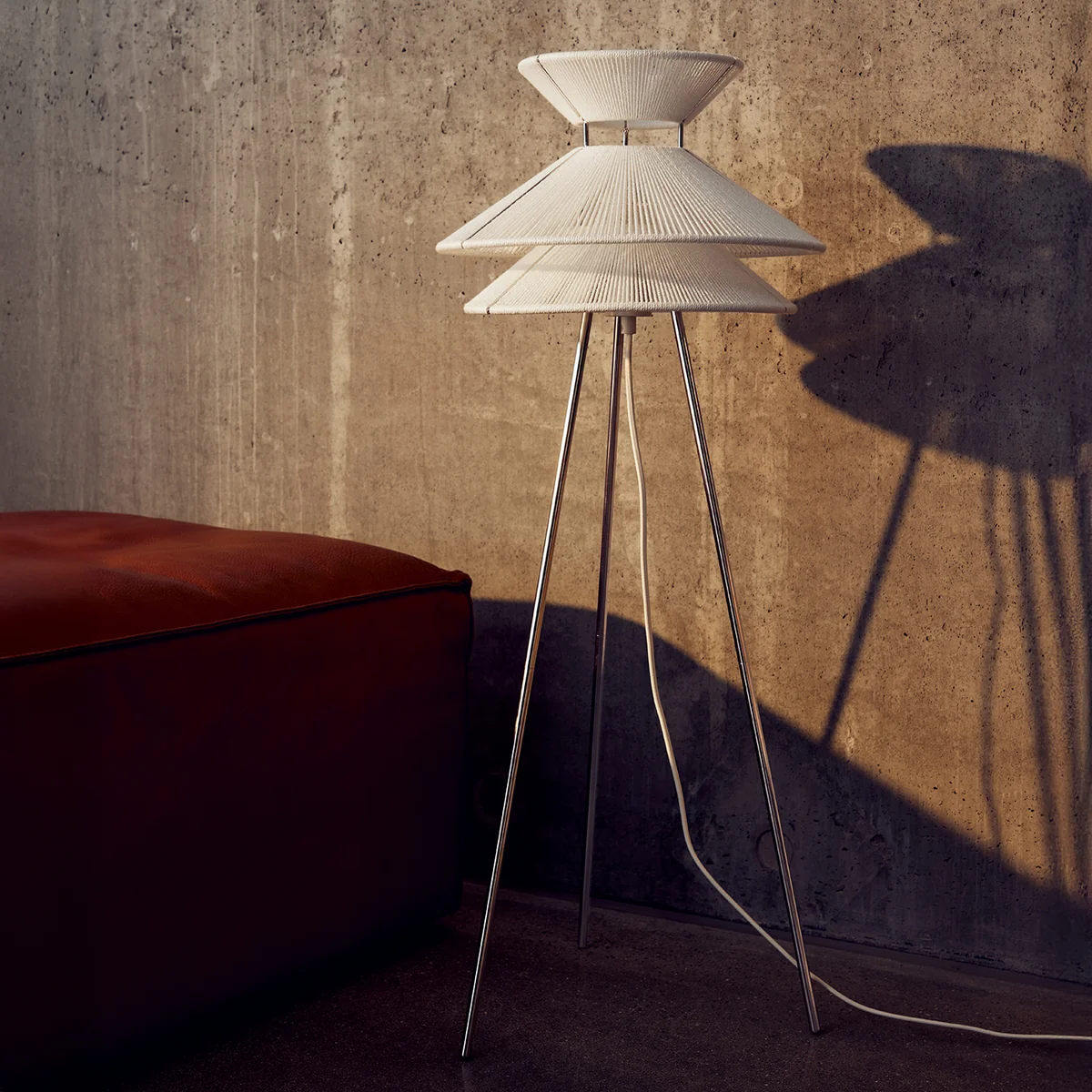 Designed by Naija Ilsøe, the floor lamp combines Kiku floor lamp combines elegant simplicity with high-quality materials. Its frame made of robust stainless steel ensures stability and a modern, timeless look, while the shade made of fine linen strands gently filters the light and creates a warm, inviting atmosphere. The clear lines and harmonious design make Kiku a stylish eye-catcher that impresses both as a decorative element and as an atmospheric light source in living and lounge areas.