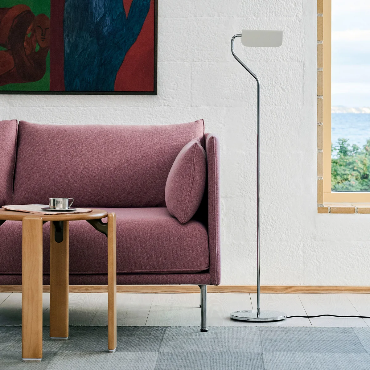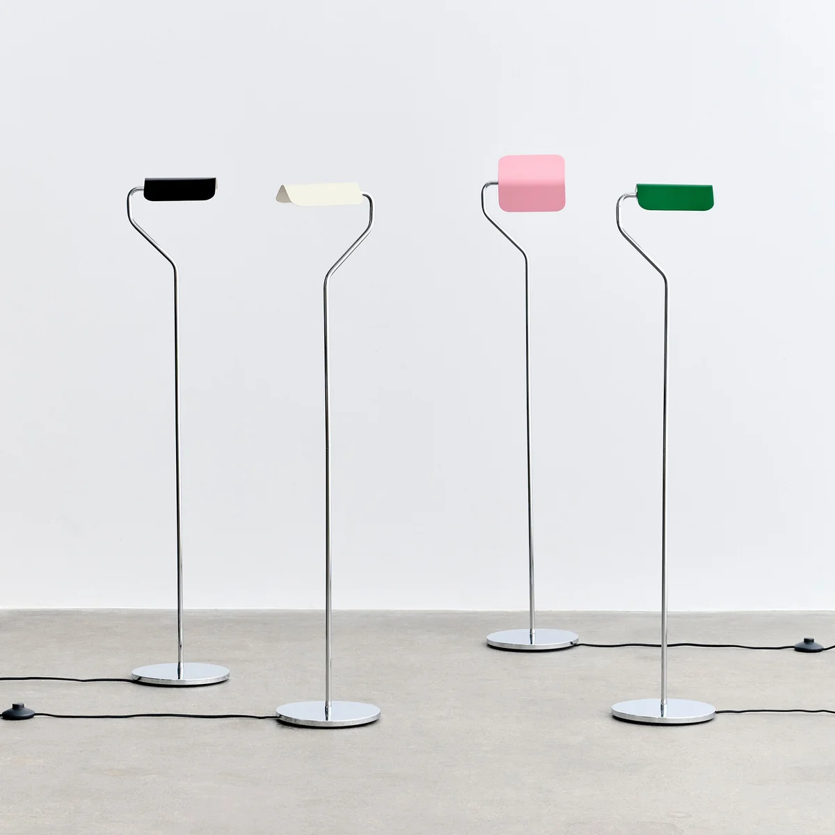 The Apex floor lamp combines the classic design of the Banker's Light with a contemporary, colorful touch. Created by British designer John Tree, it combines archetypal shapes with modern functionality. The folded steel shade forms a striking roof silhouette, which not only gives the lamp its name, but also creates an exciting contrast to the chrome-plated base. Thanks to its rotatable shade, which can be rotated through 360 degrees, the Apex floor lamp enables flexible light direction - from targeted reading light to soft ambient lighting. With its clear aesthetics and versatile application options, it is both a functional and decorative addition to a wide variety of rooms.