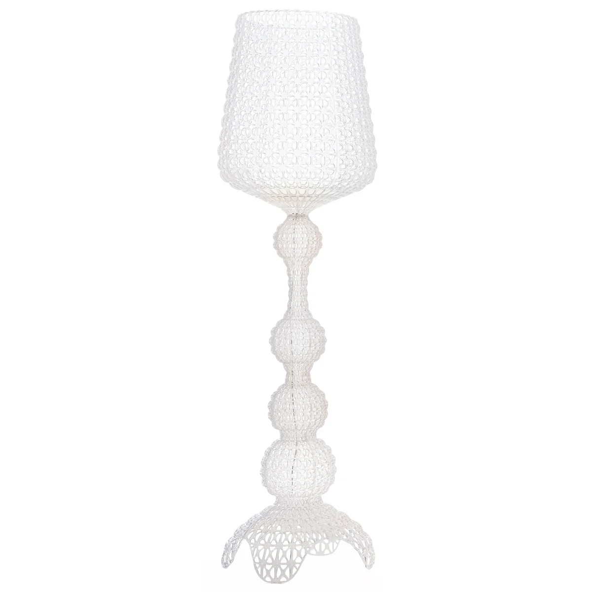 The Kabuki LED standard lamp by Pietro Ferruccio Laviani for Kartell is a neo-Baroque diva in a lace dress. Inspired by the expansive and detailed decorations of the Japanese Kabuki theatre, Laviani brings together his ideas with modern industrial production and produces the luminaire from spun-dyed and moulded plastic.
