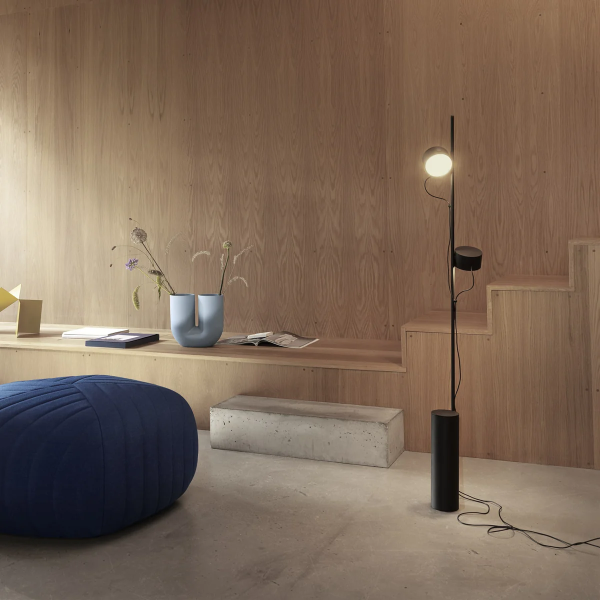 The Post LED floor lamp by Earnest Studio for Muuto features an innovative modular lighting design with an archetypal appearance, graphic lines and pioneering functionalities. In the living area, the floor lamp creates a unique atmosphere and is a real eye-catcher.