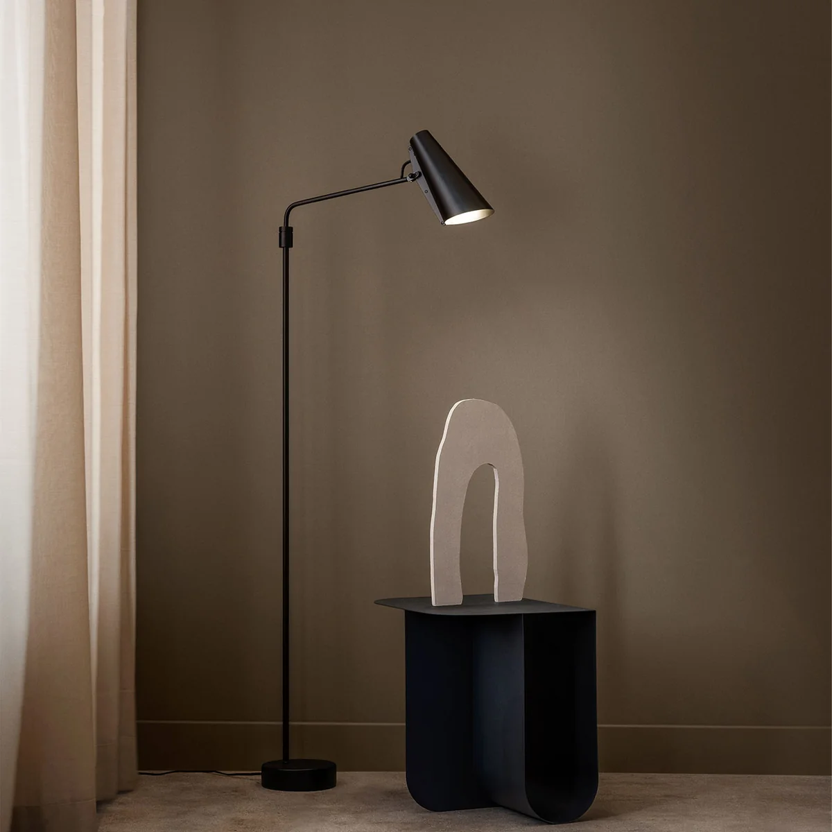 The Birdy Swing Floor Lamp from Northern not only provides pleasant lighting in the living room, but also exquisite decoration in the living room, bedroom, dining room, studio and office. Thanks to the aluminum base, the floor lamp has a stable support. It has a narrow stylish shape, which especially gives the lampshade a very special charm. The Birdy Swing floor lamp is a mixture of minimalist Nordic air and robust, straight industrial style.