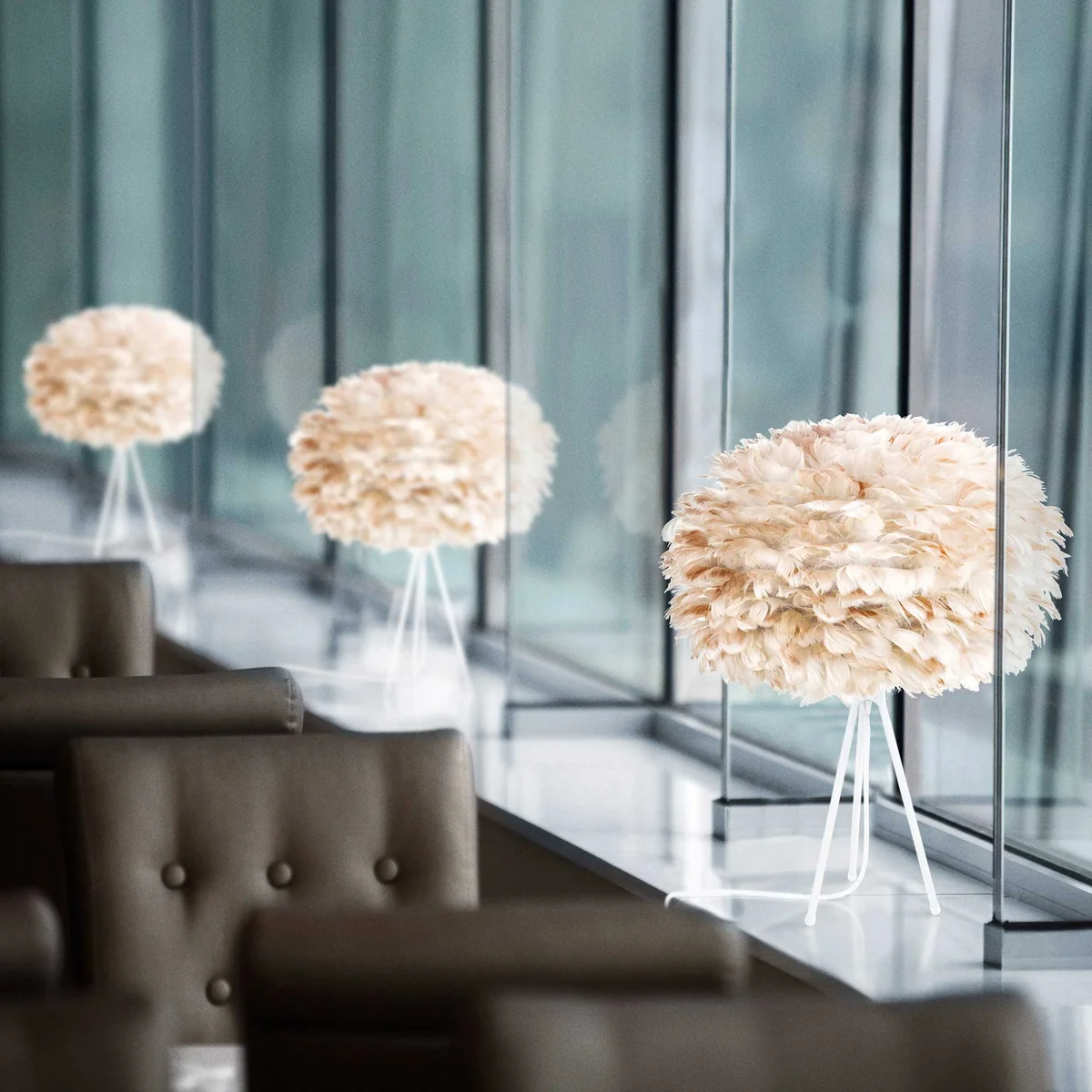 Muted by the feathers, the Eos light shines with warm, indirect light. This makes the feathered lamp particularly good for living and sleeping areas - in such areas the Umage lamp creates a cosy and atmospheric ambience.