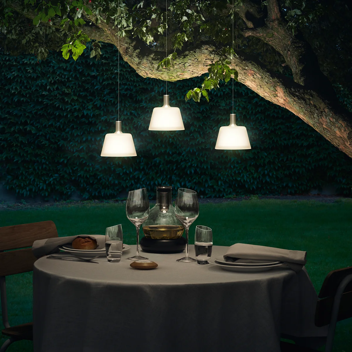 We like to spend warm summer nights outdoors, on the balcony or in the garden. For these occasions, an indirect light source such as the SunLight pendant lamp by Eva Solo is a special eye-catcher and lets the garden shine in soft light.