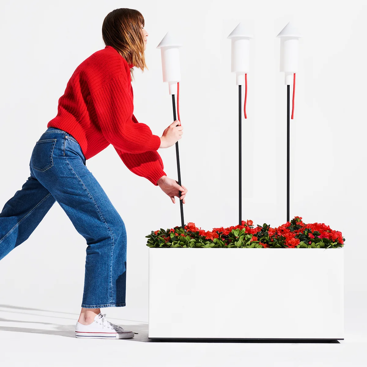 The Prêt a Racket solar light from Fatboy can be used to illuminate a long gravel path in the garden and at the same time enhance it in a playful way. The solar light can easily be stuck into the ground and the garden becomes a brightly lit rocket launch pad!