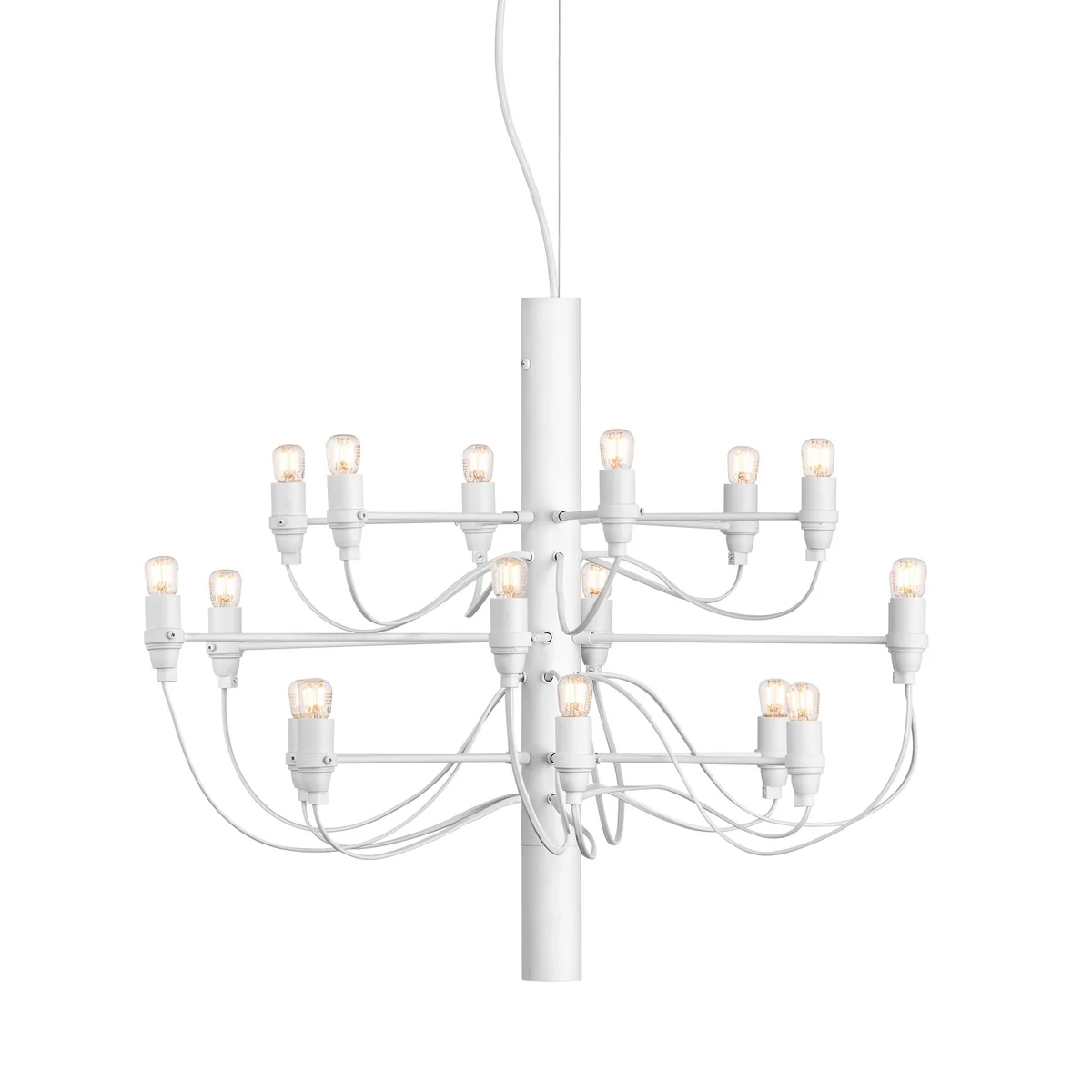 Designed by Gino Sarfatti back in 1958, the 2097 chandelier is a modern interpretation of the classic chandelier. A steel tube in the center hides the power cables that run from the bulbs, providing the sweeping yet simple design.
