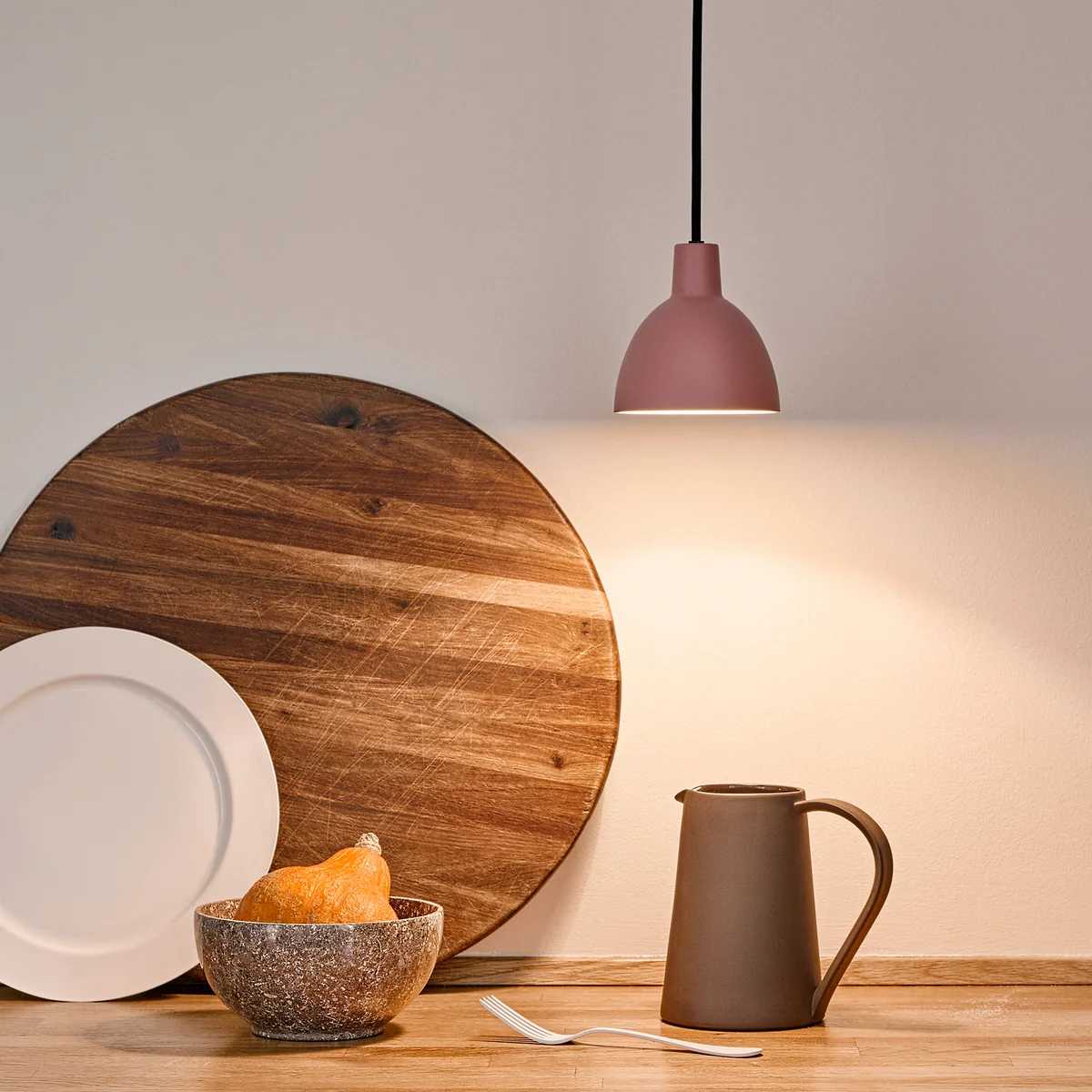 Hung singly or in clusters or in rows, the pendant luminaire provides pleasant Toldbod pendant luminaire provides pleasant lighting in any setting. As an extra feature, the Toldbod aluminium luminaire has been provided with a decorative packaging.