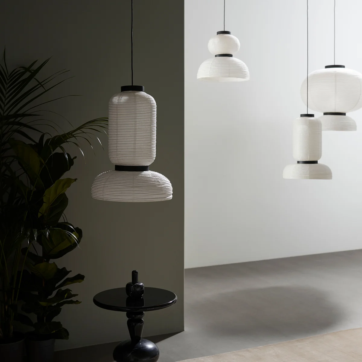 The rice paper pendant lamps by designer Jaime Hayon are available in different variants.