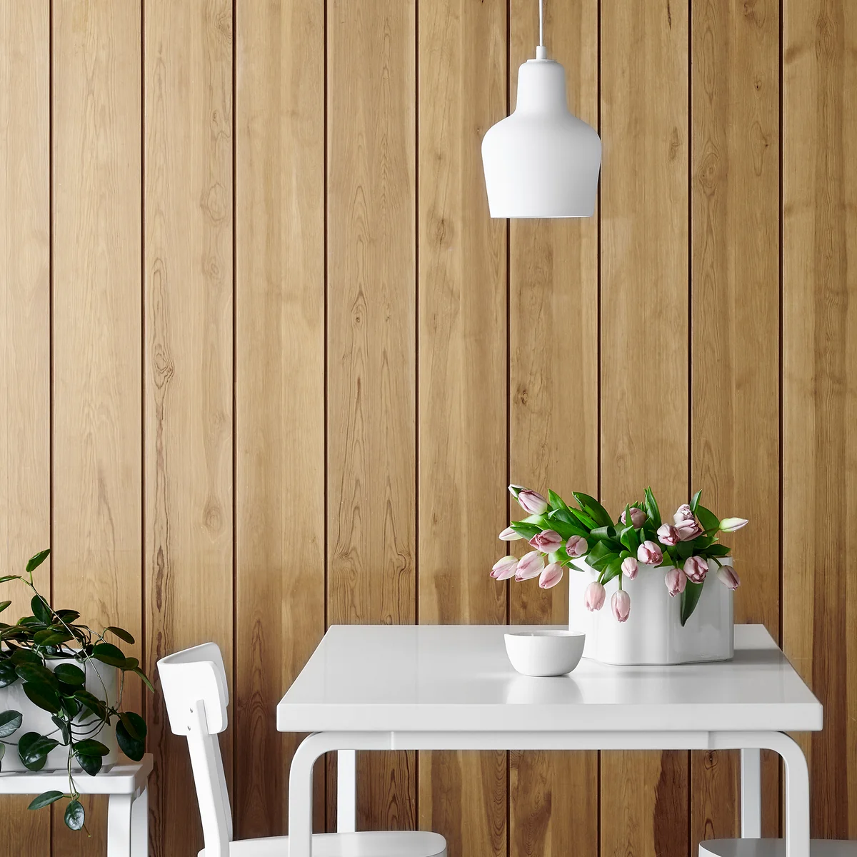 Designed in 1954, the pendant lamp A 440 can almost be considered a new interpretation of the Golden Bell from the 1930s. Common to both lamps is their organic shape with straight and flowing lines. The unobtrusive design also makes the pendant luminaire A 440 a timeless classic.