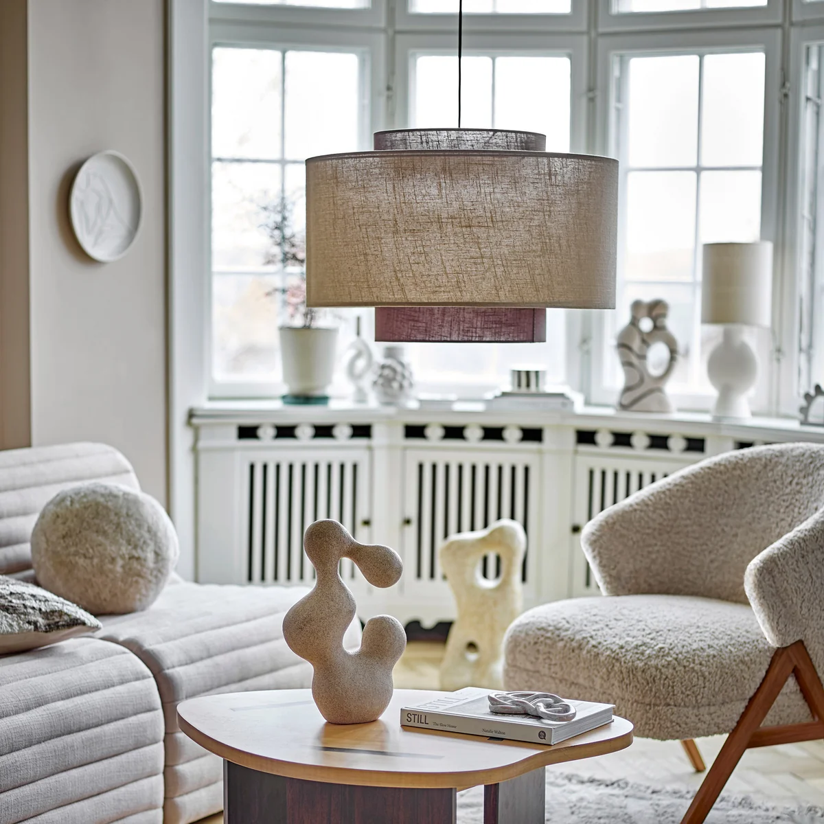 The Janica pendant light from Bloomingville impresses with its simple and modern design, which blends harmoniously into a wide variety of interior styles. The lampshade made of high-quality linen in warm, brown tones lends the luminaire a natural elegance and provides a cozy, soft light that bathes the room in a warm atmosphere. Whether above the dining table, in the kitchen or in the living room, the Janica pendant light sets stylish accents and creates a cozy lighting mood in your home.
