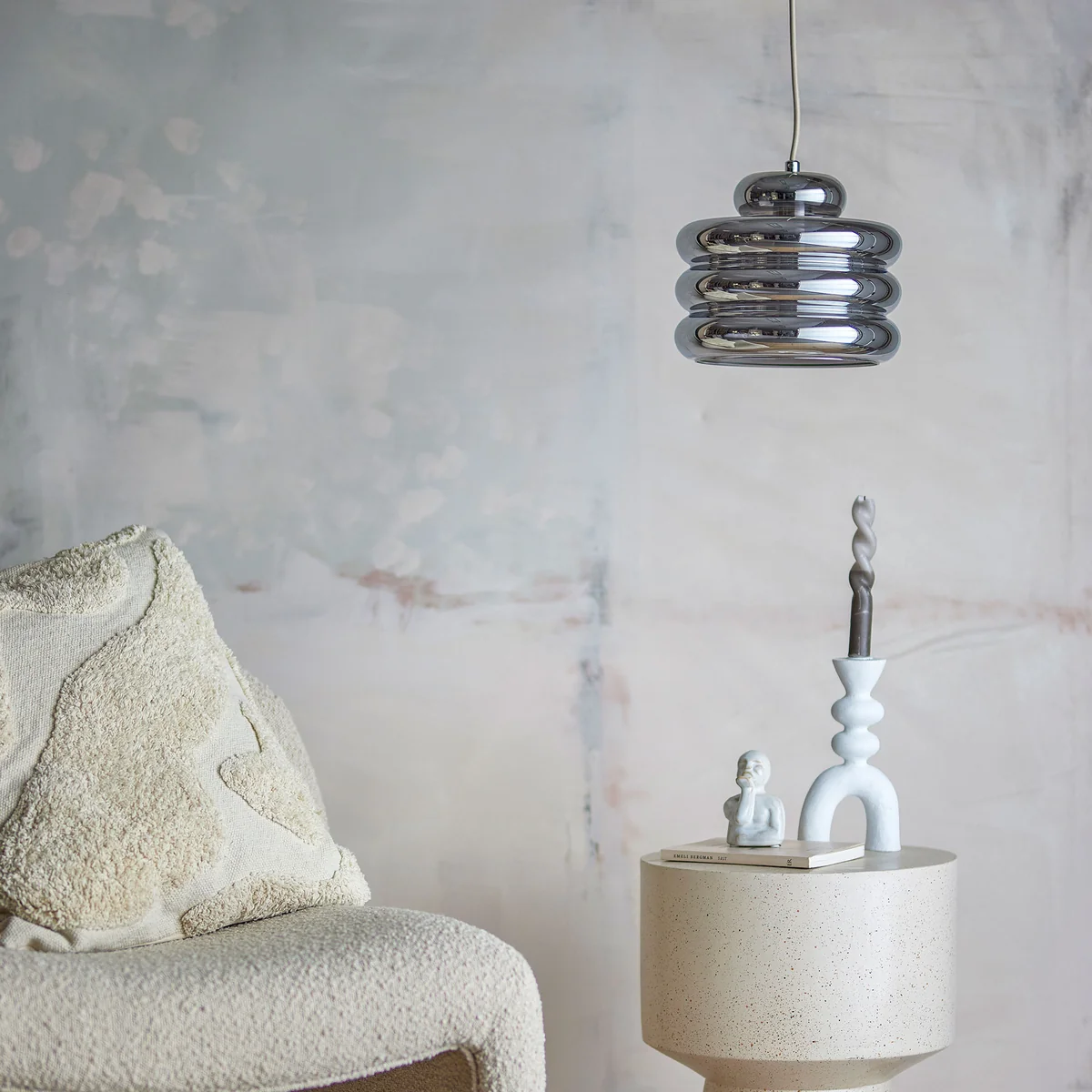 The Spike pendant light from Bloomingville combines simple form with festive charm. Its round, organic design in silver-colored glass creates a stylish atmosphere, while the elegant chrome look adds a modern accent. Whether as a single highlight above the dining table or in combination with several lights - the Spike pendant light brings elegance and lightness to any room.