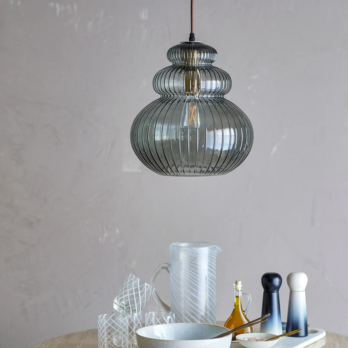 The Sybia pendant light from Bloomingville impresses with its clear design language and softly tinted glass shade. The understated design is rounded off with textile details and metallic accents - ideal above the dining table, kitchen island or in the hallway.