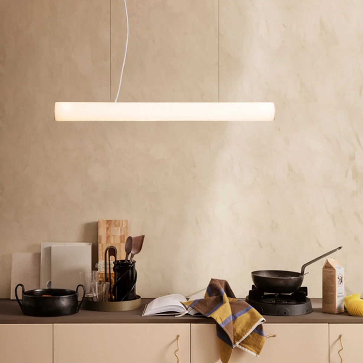 Ferm Living - Vuelta LED Pendant Light, L 100 cm, white / brass