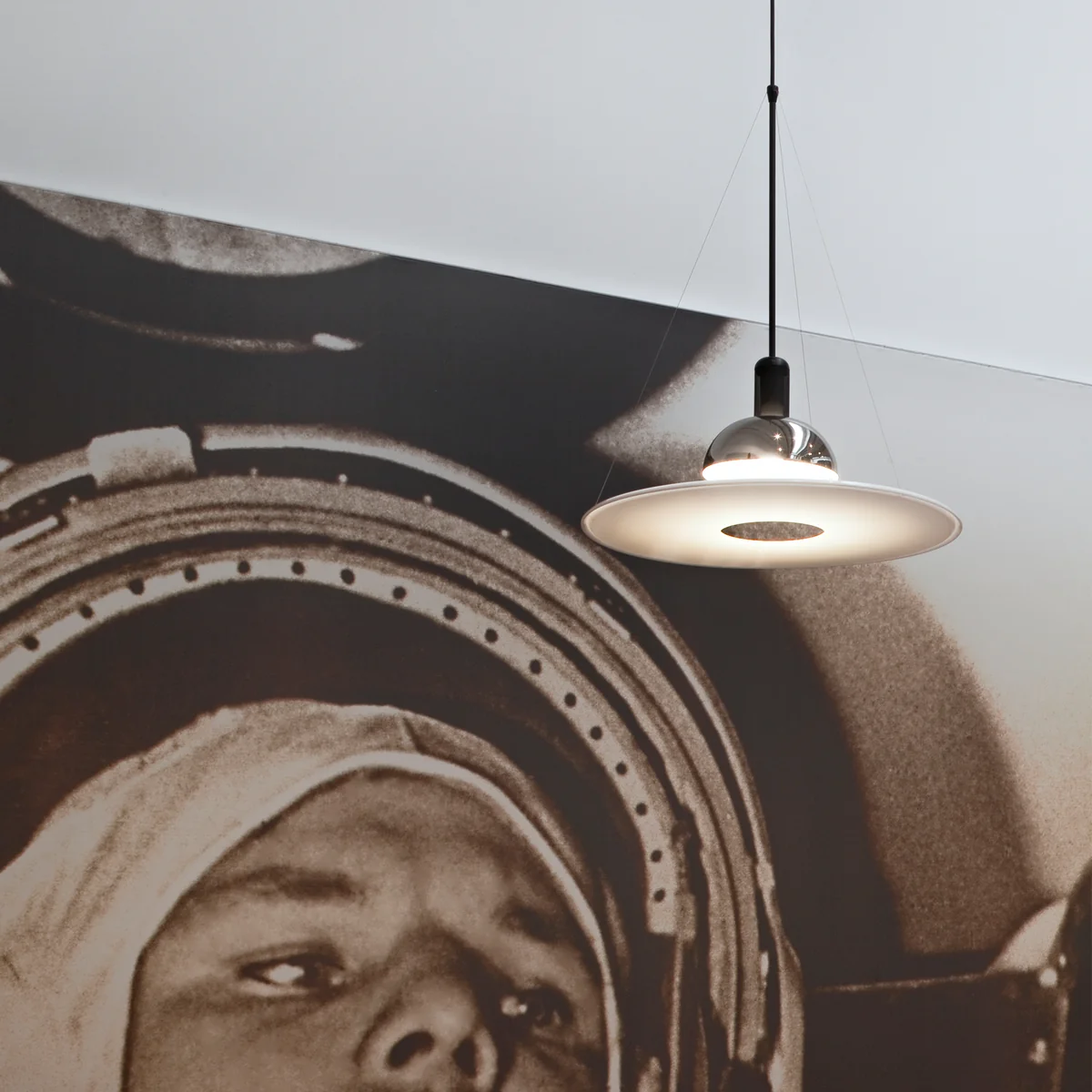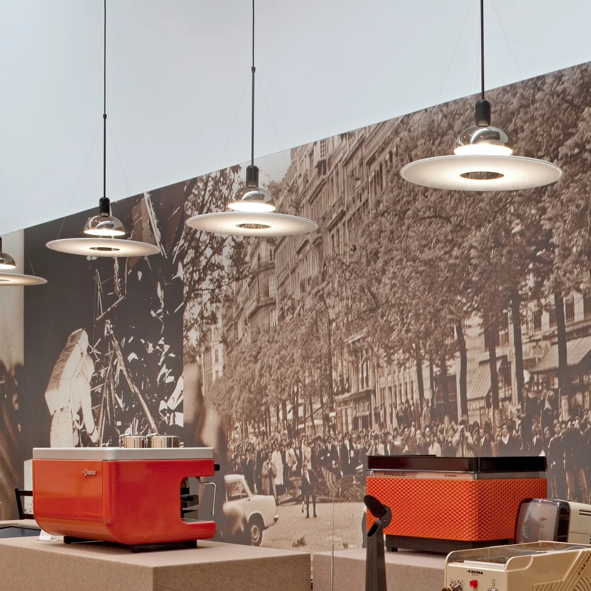 1978 designed by Achille Castiglion, the Frisbi Pendant luminaire today are well used in public spaces such as restaurants and galleries. But it also looks great over the dining table, the kitchen island or in the living room.