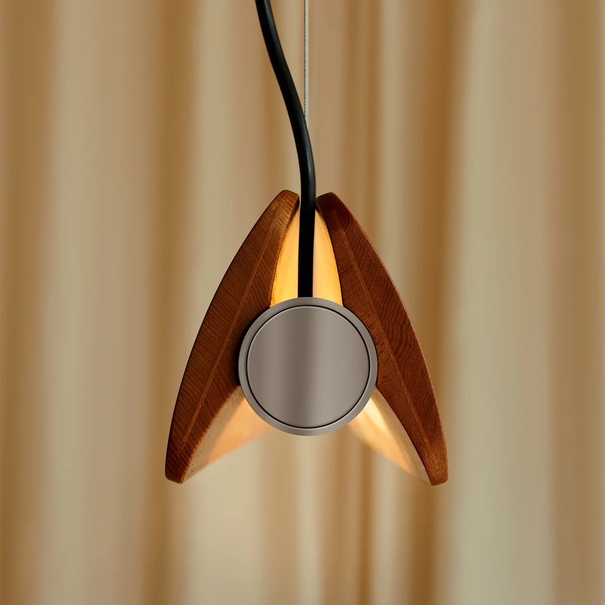 - Pendant light with rotating ash wood wings and chrome-plated fittings
